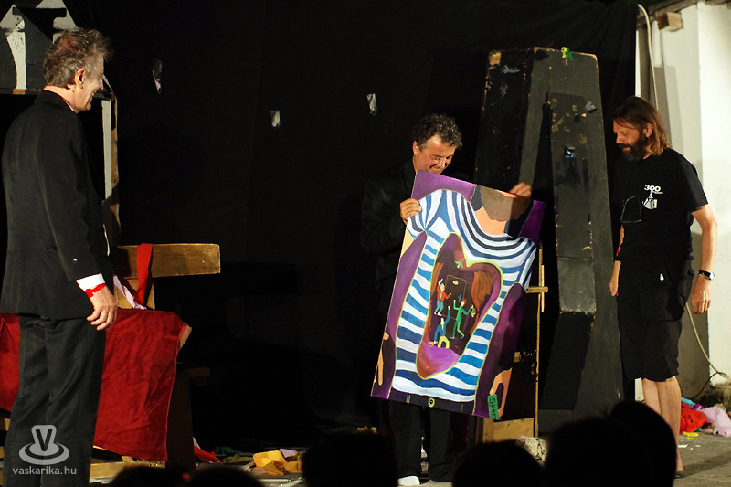Mrozek frenetikus tragikomédiáját játszotta július 31-én a nagyszerű bohóctrió: Kapa, Pepe és Rémusz (Mucsi Zoltán, Scherer Péter, Szikszai Rémusz). Az előadással nem akármilyen jubileumhoz érkezett a Bérczes László vezette csapat: az 1999. februárjában bemutatott produkció a 300. alkalom volt.