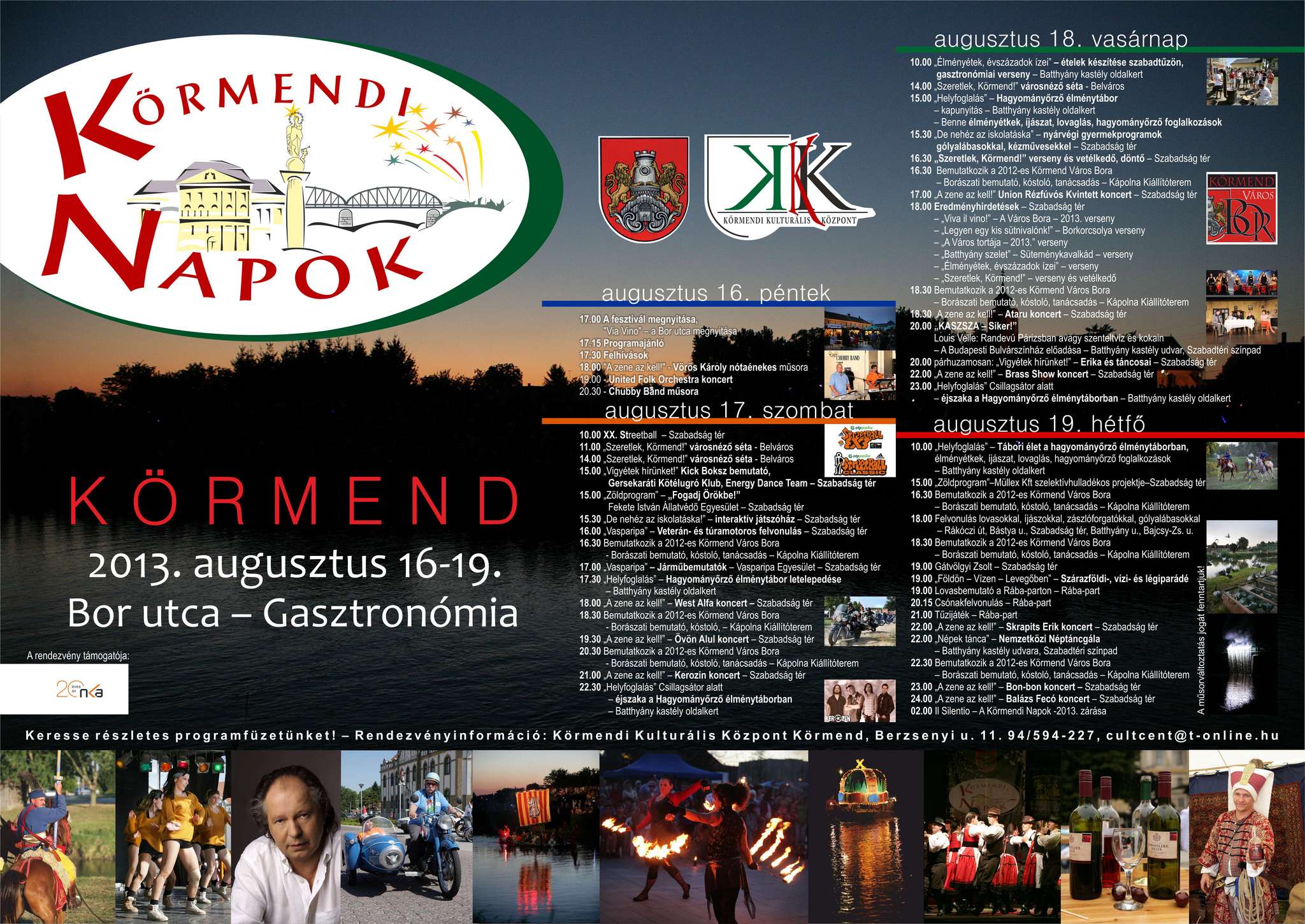 Borutca, nemzetközi néptáncgála, szárazföldi-, vízi- és légiparádé, térzene, koncertek, tűzijáték és csónakfelvonulás - a Körmendi Napok háromnapos rendezvénysorozat ismét változatos programokkal várja a városba látogatókat augusztus 16. és 19. között.