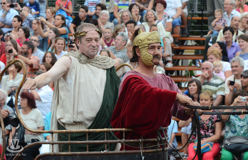 Augusztus 23-án, pénteken este hétkor indult a már hagyományos jelmezes felvonulás a Történelmi Témapark mellől. Közel tízszázadnyi jelmezes idézte fel a város és a régió történetét. A katonaság élén Claudius császár, mögötte a Savaria Legio Egyesület és Róma többi katonája után sorakozott fel a menet. A felvonulás egyik meglepetése a Tűzmadarak artistacsoport steampunk időgép-velocipédje volt.