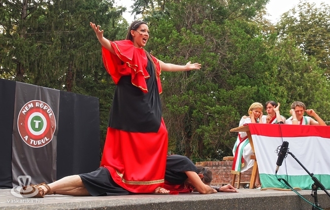 A középkori mutatványos hagyományok és a modern szórakoztatás csalta a napra a szépszámú érdeklődőt péntek koradélután a borutcai színpad elé. Az Artistica Anam Cara és a Szombathelyi Kötélugrók szinte többet voltak a levegőben, mint a földön, akárcsak az őket követő Ungaresca Táncegyüttes legényei. A táncosokat a Boglya Népzenei Együttes kísérte.
