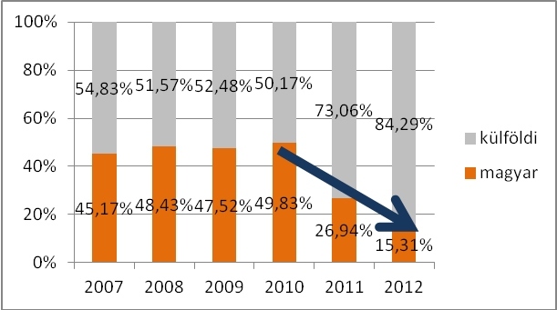 Egymást követő negyedik évben produkált növekedést a rádiókban sugárzott magyar könnyűzene aránya. 2012-ben már a 32 százalékot is meghaladta ez az eredmény. Ezt a trendet erősíti az egyébként jelentősen visszaeső lemezeladásokon belül növekvő magyar zenei arány is, ahol több mint 70 százalékot regisztráltak. A sorból csak az online zeneértékesítés lóg ki, ahol továbbra is visszaszorulóban vannak a hazai zenék.