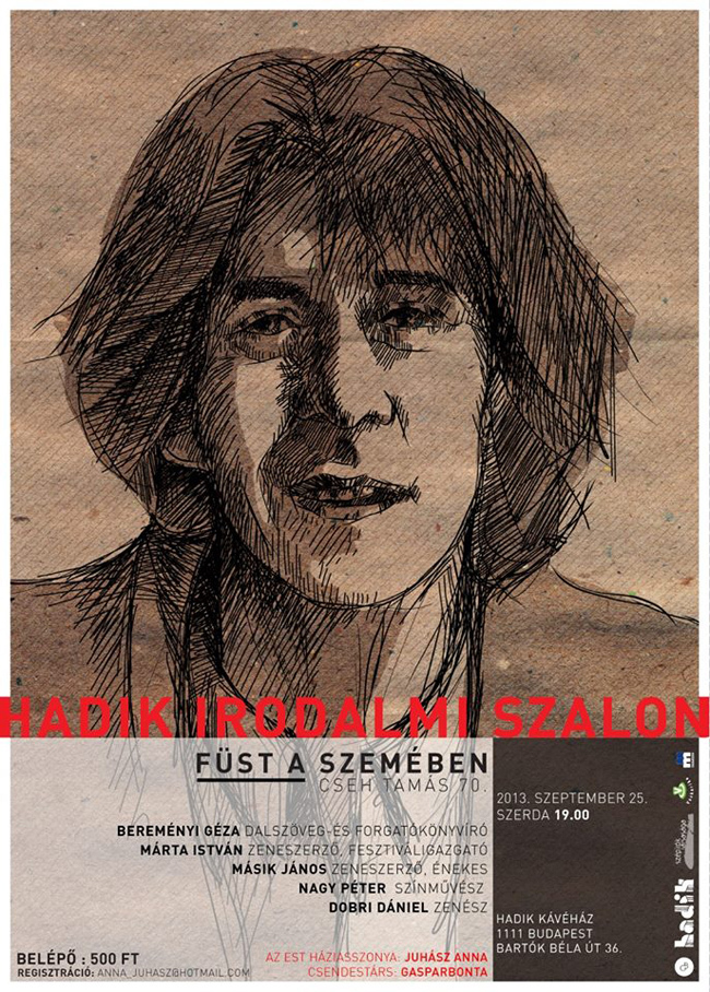 A nyári szünet után, a 2013/2014-es őszi szezont egy igen különleges esttel indítja a Hadik Irodalmi Szalon: fennállásának 30. irodalmi, művészeti rendezvényére kerül sor, s ezt az alkalmat egy olyan kivételes zenész, előadóművész, énekes emlékestjével ünnepli, aki nevével kultuszt teremtett, dalai, előadásmódja, személye beleégett az őt ismerők, szeretők, követők fülébe, szívébe – szeptember 25-én Cseh Tamásra emlékezünk együtt.