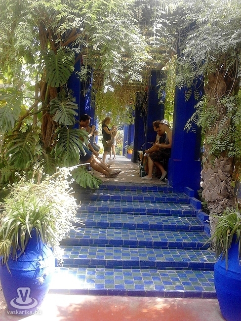 A Majorelle-kertet tartogattuk marrakeshi tartózkodásunk első felének a végére, és ezt nem is bántuk meg, ez volt a sok-sok marokkói kert közül a leggondozottabb és legérdekesebb. A gyönyörű kert a nevét Jacques Majorelle francia festőről kapta, aki Marrakeshben megvásárolt egy területet, amelyet beparkosított különleges növényekkel. A kert flórája között az öt kontinens növényeinek több előfordulása jelen van - kaktuszok, pálmák, egzotikus virágok, a kert taviban pedig tavirózsák, lótuszok alkotnak izgalmas és színes csoportokat. Majorelle halála után a kertet a pusztulás veszélye fenyegette. A kék, sárga és zöld színű kertet a francia divattervező, Yves Saint Laurent és Pierre Bergé vásárolta meg. Nekik köszönhető, hogy az nem lett az enyészeté és ma is látogatható. A kertben látható az egykori divattervező sírja, valamint egy, a rajzaiból készült kiállítás.