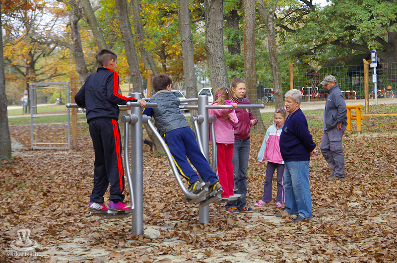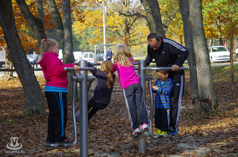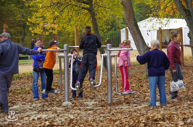 A szombat reggeli ködös megnyitó helyett bíztunk a nap természetsimogató, délutáni fényében - s bejött! Családok özönlöttek a szabadba ebéd utáni kikapcsolódásként a csodásan megújított Parkerdőbe, s vették birtokba az új sportpályát, tornaligetet, kerékpárutat, futófolyosót, tanösvényt és az új játszótéri játékokat. Az erdészet által felújított Parkerdő az lett, ami valódi funkciója: agóra a természetben.