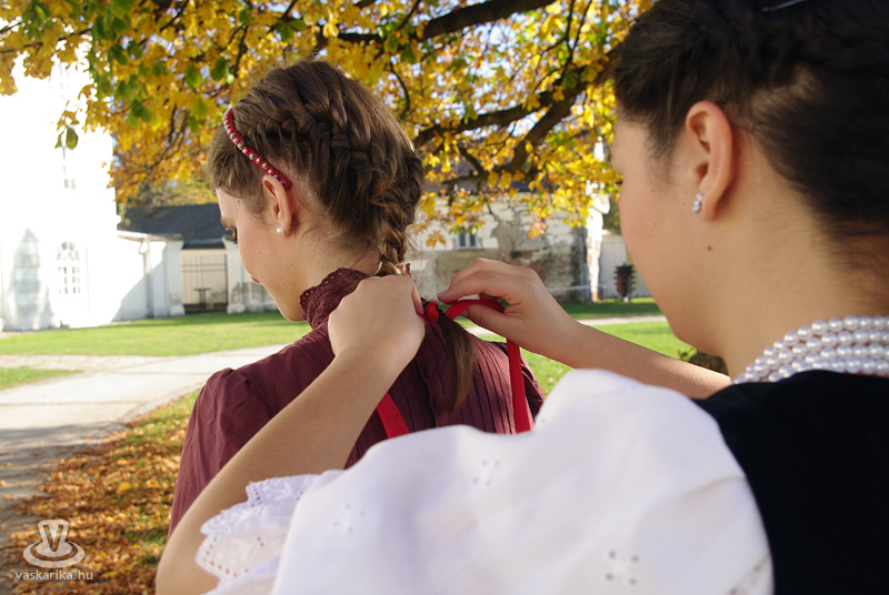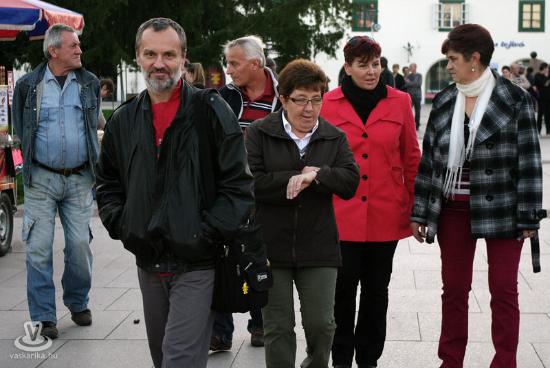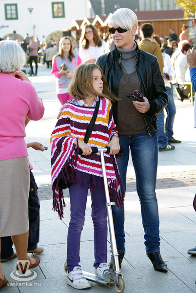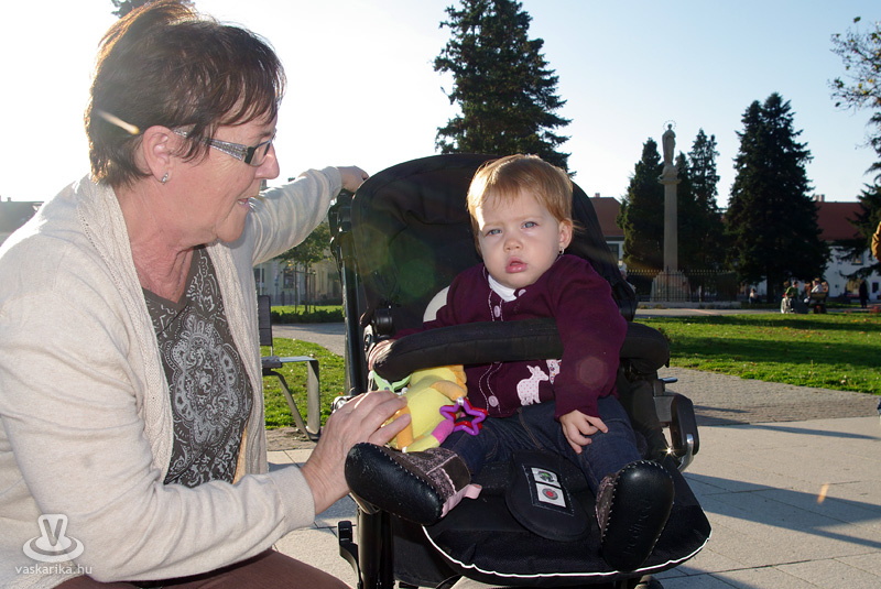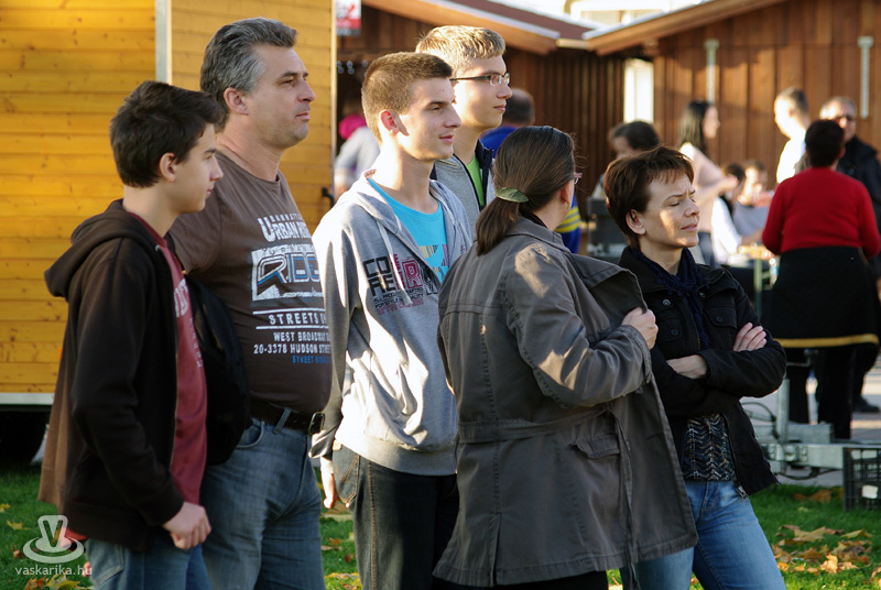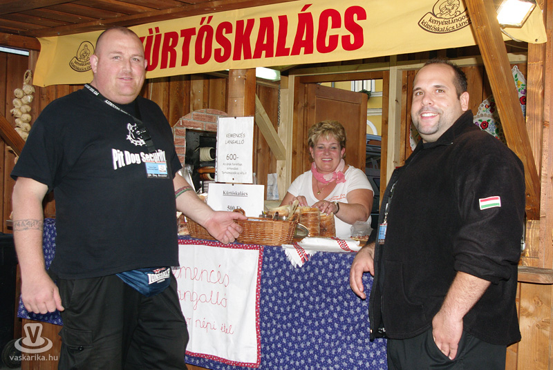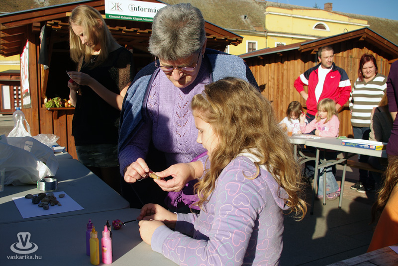 Az ünnepi kiállítás megnyitója után a térre indultunk, és körbenéztünk, milyen finomságokat szerezhetünk be a szombat délutáni napsütésben. A Körmend város tortájáról megtudtuk, hogy nem csak szép, és első látásra lenyűgözi a kóstolni vágyókat, hanem nagyon finom is. Sokféle ízből áll, ezek mégis egy harmonikus egésszé olvadnak össze. A készítőt kérdeztük arról, mi is ez a kavalkád, amit Őrségi sütőtökös almatortának hívnak: "5 textúrából épül fel a torta és francia vonalú trend alapján készül, Vas megyére jellemző alapanyagokból. Az alsó réteg egy sütőtökkel, dióval dúsított tésztaréteg, felette van egy karamellizált alma, afelett egy főzött vaníliakrém, majd almás tésztaréteg, a tetején mascarpone krém, a díszítés pedig alma csokoládélapocskákkal. Tavaly indultunk vele az ország tortája versenyen, és ott második helyezést értünk el" - mondta el Németh Ildikó. Nos, kedves körmendiek, mondhatjuk, hogy nagyon szerencsések vagyunk, hiszen városunk tortája tavaly az ország második legjobb tortája volt. Vasárnap még mindenki megkóstolhatja, de figyelem: szombaton estefelé már nem tudtunk belőle repetázni, mert mind elfogyott...