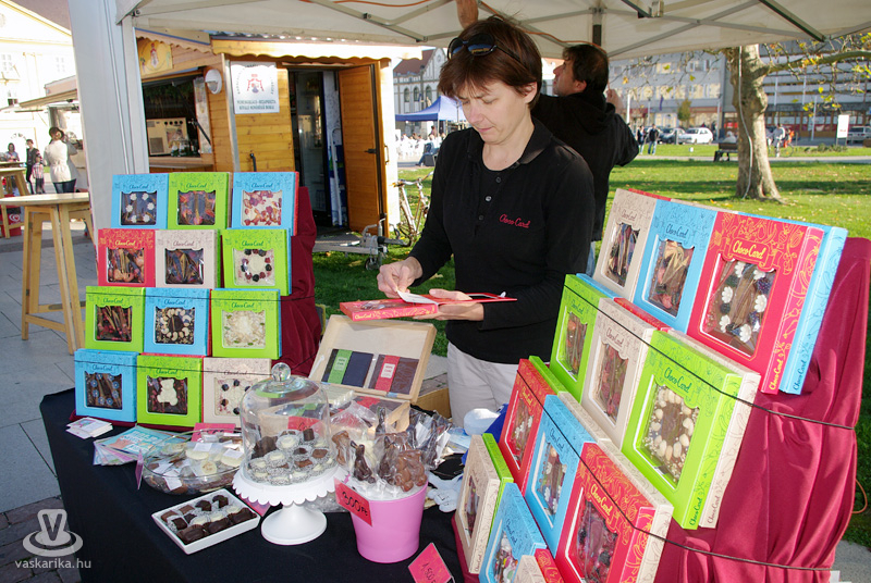 A szervezők nem vicceltek: a "Gasztro ősz" elnevezés nemcsak holmi légbőlkapott szójáték Körmend Város Ünnepnapján. Felfedezőutunk a ChocoCard elnevezésű, belga alapanyagokból, kézzel készített csokoládék asztala felé indult. Foki Izabellát kérdeztük arról, hogy mi is ez a sok édesség, amikről látjuk hogy csokoládé, de úgy érezzük, több ennél: "A dobozos csokikba képeslapot lehet belecsúsztatni, így ünnepi alkalmakra kiváló ajándék. A sima csoki ugyanabból az alapanyagból készül, csak nem díszdobozban kerül a vásárlókhoz. Vannak kicsi csomagolások, ezek csak kóstoló mennyiséget tartalmaznak virágmotívumokkal vagy szárított gyümölccsel készítjük őket. A kézműves bonbonok málnás, sütőtökös, csokikrémes ízesítésben készülnek csokoládéüzemünkben. Viszont ami mindegyikben megegyezik, az a legfinomabb belga csokoládé, ami minden itt látható termékünk alapanyaga" - mondta el Foki Izabella. A különlegesen finom édességeket ajánljuk kicsiknek és nagyoknak egyaránt, és külön dicséretet érdemel a készítő azért, hogy egy-egy falatos kóstoló mennyiséggel is készült.