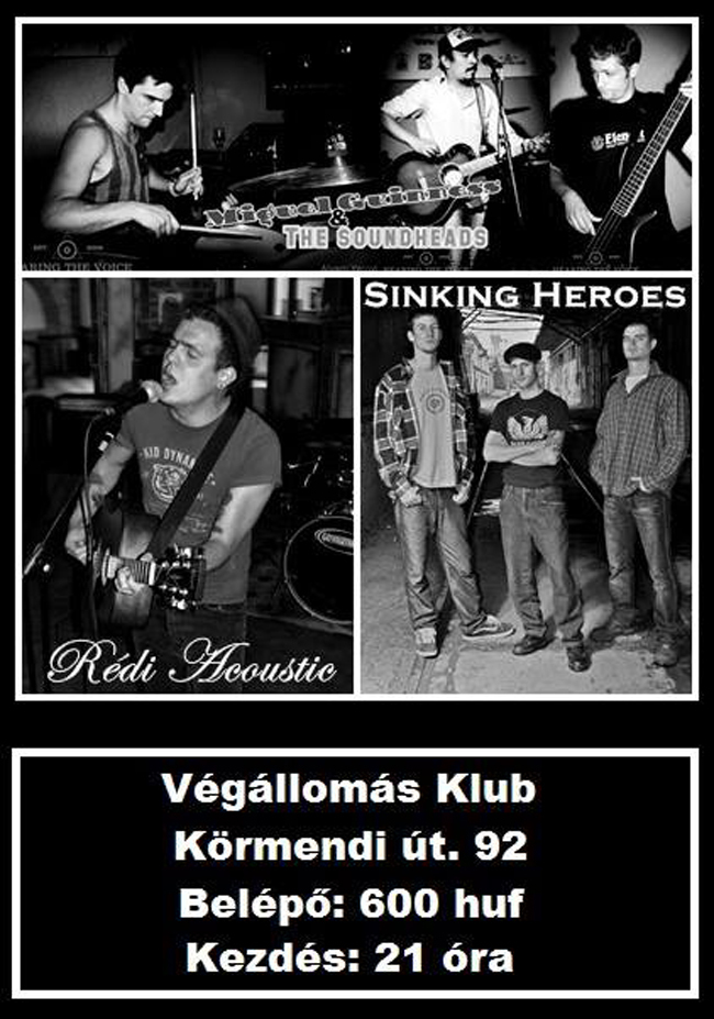 A Sinking Heroes a nyugati punk-rock feelinget nyüstöli idestova tíz esztendeje. Az új nóták mellett régi szerzemények is helyet kapnak a repertoárban a hétvégén. Ezenkívül felcsendül pár akusztikus dal is meglepetésként.
