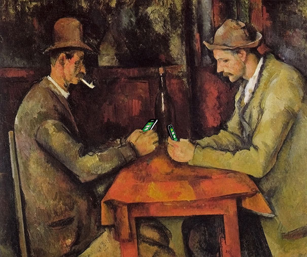 Kim Dong-Kyu koreai grafikus mindezeket „befecskendezte" a művészettörténet néhány világhírű alkotásába, és ezzel egy disztópikus világot teremtett. A mai technológiai eszköz jelenléte furcsa módon a képen szereplő alakokat magányossá és szomorúvá varázsolja. Ki tudja, miért?