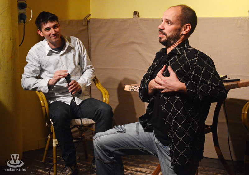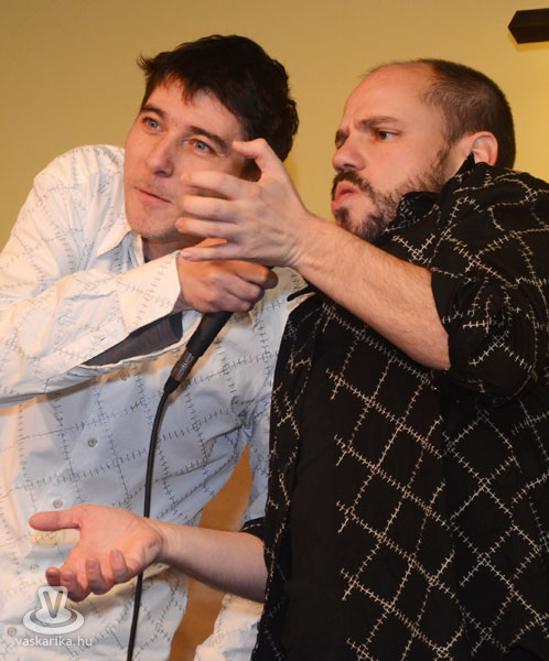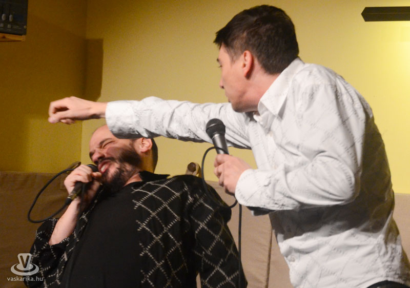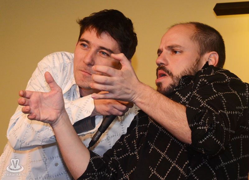 De mindez csak bemelegítés volt. Kálmánchelyi Zoltán és Vass Szilárd friss újságokat osztott ki a közönségnek, és a kiválasztott hírekből a fiúk felváltva improvizáltak. A törzsközönség rutinos volt, jó témákat választottak, például a „Van, aki tartja a férfinapot" és a „WC világnapját" kombinálták. Szavakkal le nem írható a két színész játéka, érdemes elgondolkodni, hogyan lehetne eljátszani a témát. A „Fogjuk meg egymás kezét"-re rövid megoldás született. A „Trükkös csalók járnak" és „Patikaügyelet" hírek kettősének csattanójában a patikus orrba nyomta a csalással kísérletezőt.