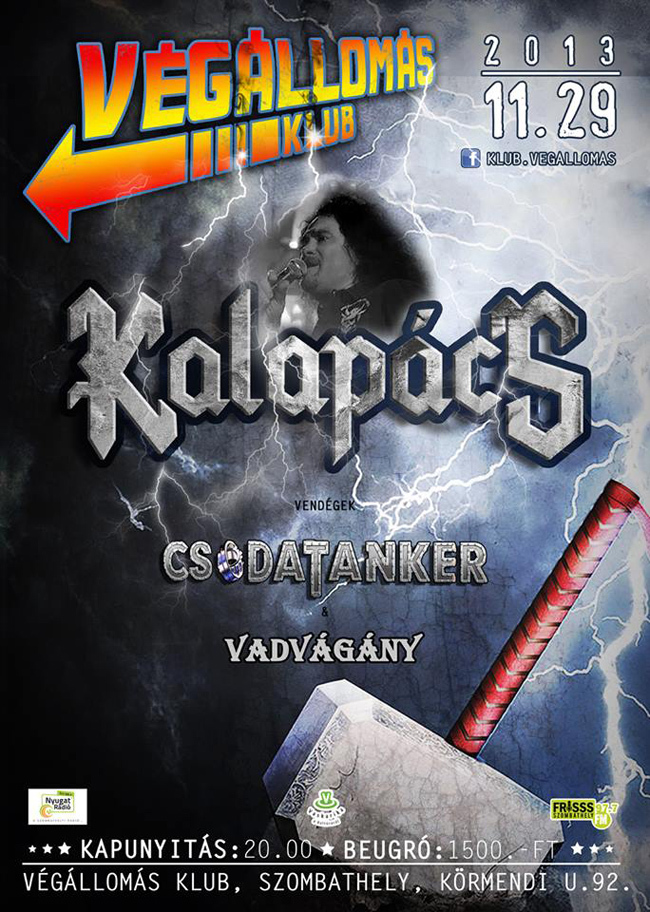 November 29-én, pénteken - a magyar blues legenda után - a hazai metál színtér egyik ikonja Kalapács József érkezik zenekarával a Végállomásba. Vendég a Csodatanker, és a helyi színek képviseletében a Vadvágány.