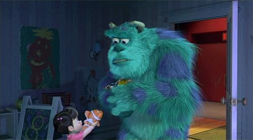 Nem ér még véget ezzel, hiszen Boo miközben Sulley kezébe pakolja játékait odaad neki egy kis Némót is. A játékok közt egyébként szerepel még egy labda [kép], mely a Luxo Junior kisfilm kapcsán híresült el és egyéb Pixar kisfilmekben illetve a Toy Storyban is benne van [kép]). Egy Jessie baba is Sulley kezébe kerül, aki pedig nem más, mint a Toy Story 2 egyik főhőse.