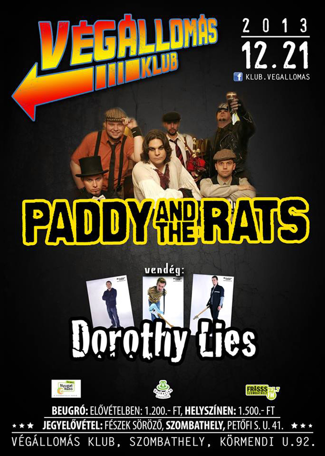 December 21-én, szombaton igazi ír kocsmahangulatot varázsolva a Paddy and The Rats érkezik a Körmendi úti deszkákra. Helyi erőként a Dorothy Lies színesíti a programot.