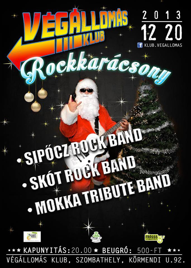 December 20-án, pénteken a rock zene fanatikusait várja a Végállomás egy ünnep előtti kellemesnek ígérkező összejövetelre. A hangulatról a Sipőcz Rock Band, a Skót Rock Band és a Mokka Tribute Band gondoskodik.