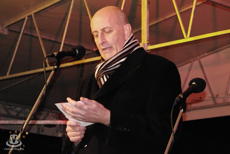 Az Angyaljáték után a Fő téren Bebes István polgármester mondta el köszöntőjét.