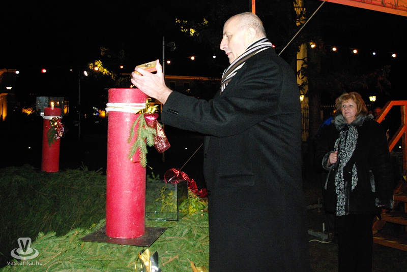 „Az a gyerek, aki az első hóesésre vár - jól várakozik, s már várakozása is felér egy hosszú-hosszú hóeséssel. Az, aki hazakészül, már készülődésében otthon van. Az, aki szeretni tudja azt, ami az övé - szabad, és mentes a birtoklás minden görcsétől, kielégíthetetlen éhétől-szomjától. Aki pedig jól várakozik, az időből épp azt váltja meg, ami a leggépiesebb és legelviselhetetlenebb: a hetek, órák, percek kattogó, szenvtelen vonulását. Aki valóban tud várni, abban megszületik az a mélységes türelem, amely szépségében és jelentésében semmivel se kevesebb annál, amire vár." Az ünnepi beszéd kezdetekor idézett gondolat folytatásával zárta a beszédét Bebes István, majd mindenkinek áldott, békés karácsonyt kívánt, és meggyújtotta a város adventi koszorúján a negyedik gyertyát.