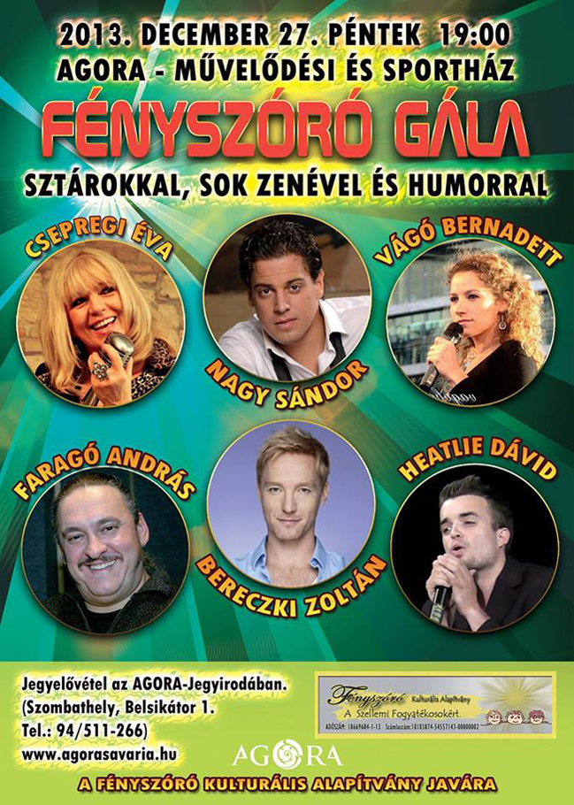 Fellépők: Csepregi Éva, Bereczki Zoltán, Vágó Bernadett, Nagy Sándor, Faragó András és Heatlie Dávid.