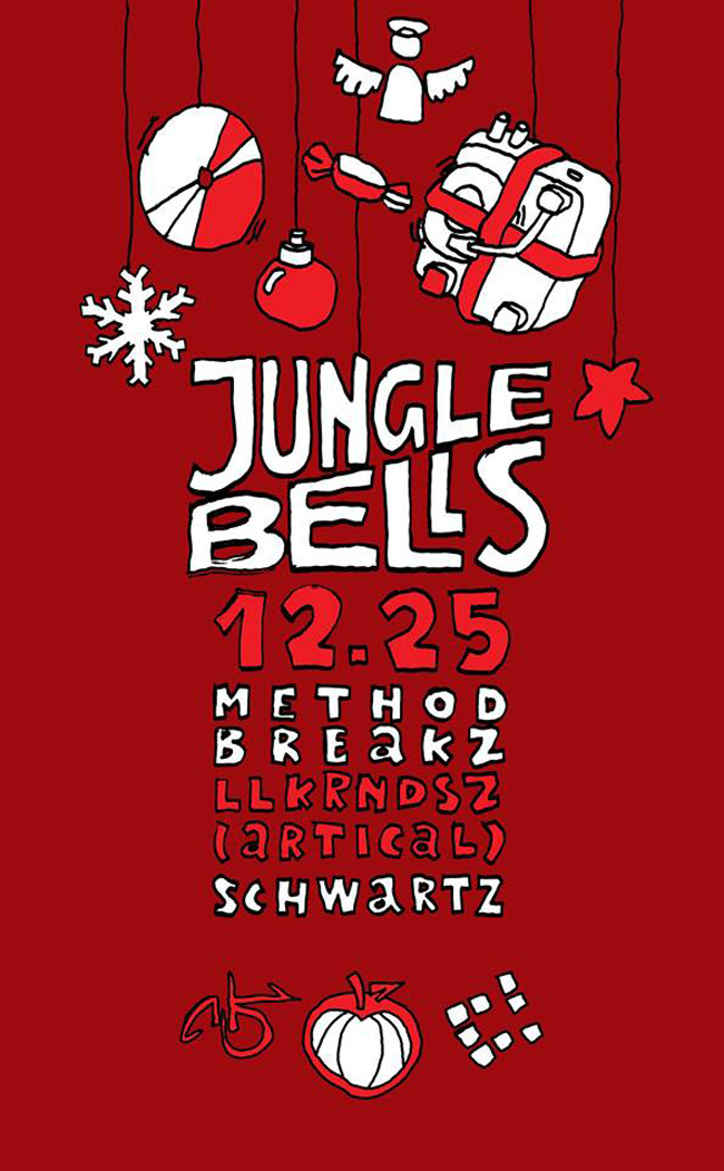 A karácsony elkerülhetetlen része az évnek (mint az adóbevallás), amibe valljuk be, el lehet fáradni, így itt a kiváló alkalom, meglépni a rokonok, a bejgli túladagolás és a reszkessetek betörök ismétlése elől (bár, az utóbbi megunhatatlan ugye), hogy együtt üljük illetve, táncoljuk az év legfontosabb tört-ünnepét a jungle bells-t. Szóval, aki szereti, az old skool raggajungle, liquid roller, neurofunk, drumfunk és a klasszikus éra nagy, parketta szaggató drum n bass tételeit, annak köztünk a helye a jungle karácsonyon. A talpalávalót a régi iskola hű követői methodbreakz és llkrndsz (artical) míg az új generáció soraiból schwartz építgeti ezen alkalommal. Szóval, gyertek a magba, hadd szóljon a jungle bells (: