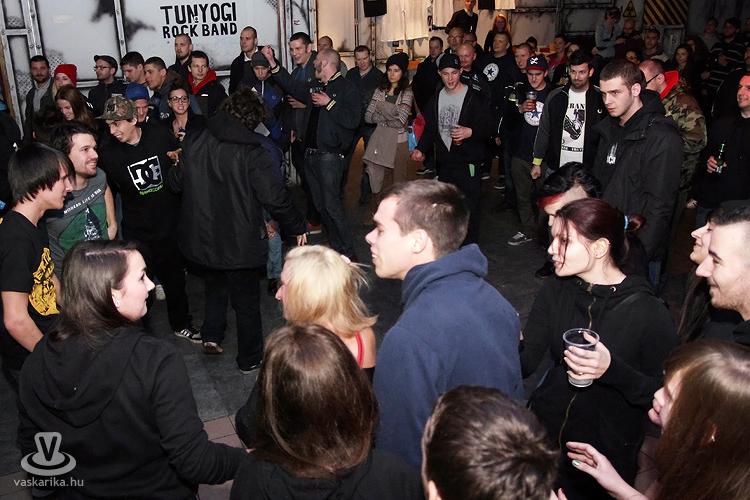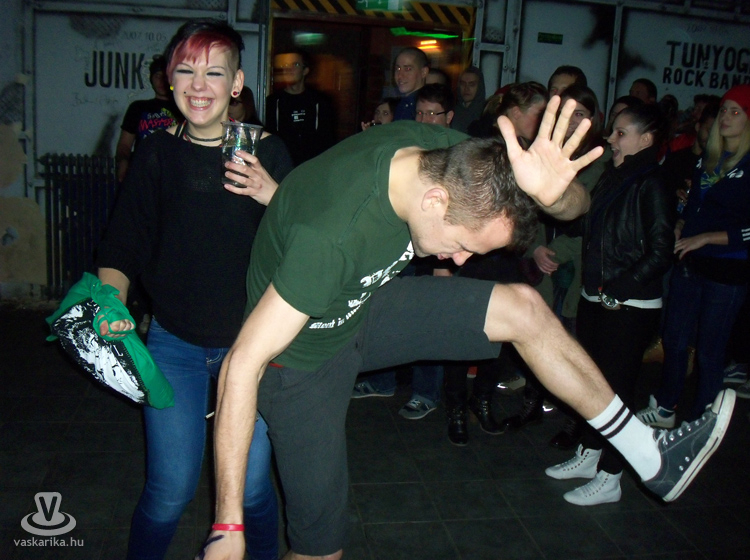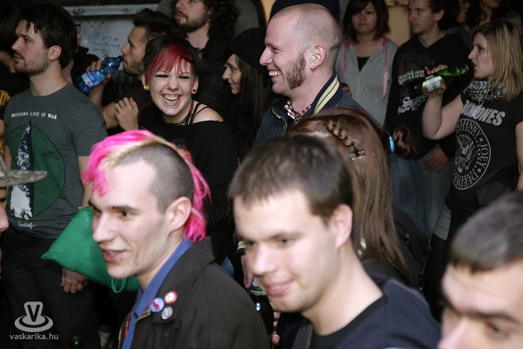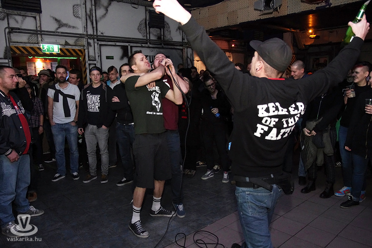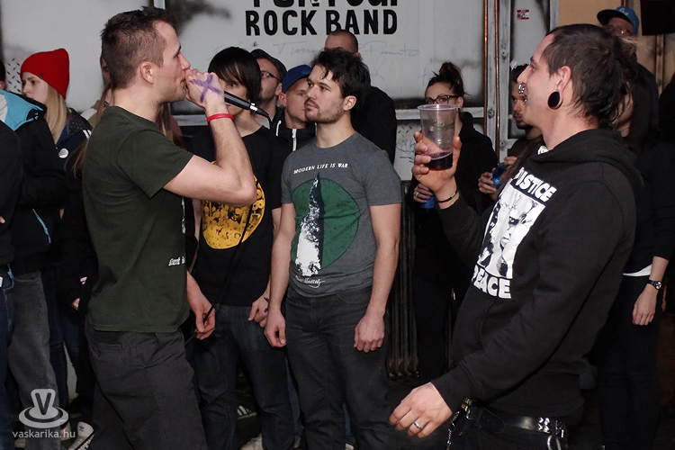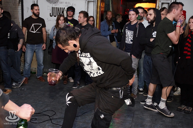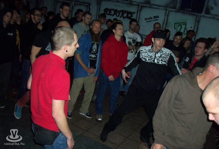 Tényleg úgy mentünk oda, hogy ha a fene fenét eszik, akkor is "megfejtjük" ennek a zenének az üzenetét, lényegét. Indulás előtt a vájtfület bedobtuk a sufniba, úgysem kapunk közérthető harmóniákat, hanem kizárólag orbitális sikálást, amit majd a társadalmi egyenlőtlenségekről, az indokolatlan húszabálásról és a "divattémának" tekinthető rasszizmus faron rúgásáról szóló szövegek hoznak egyenesbe. Hát kábé annyira nyúltunk mellé, mintha a föld helyett a fázist szorongatnánk... Minden filozófia annyit ér, amennyit a (cél)közönsége el- és befogad belőle, márpedig az alkohol terén ez a történet nagyon elcsúszott. Sajnos a szövegeket jó esetben is csak sejteni lehetett, inkább a gesztusokból - nevezzük pozitív agressziónak - dekódoltuk, hogy valami irtandó társadalmi ellentmondás vagy irdatlan nagy véres bélszín kerül ostorozásra verbálisan. Az energiaáramlás is gyakorlatilag egyirányú volt: áradt a zenekaroktól a javarészt alkoholt szorongató rajongókig. Persze az áramlással mellé is lőttünk, mert akkor mi a robbanás, ha nem a Wroongg!, vagy a Liberal Youth energikus hangsújtása? Az egész "performansz" leginkább talán az indulatfestészethez volt hasonlítható, ahol a szűz vászonra felkenődnek a lelkiállapot érzékeny rezdülései, változásai - színben, dinamizmusban egyaránt. Kétperces blokkonként posszan egy-egy színes lélekpatron, s fél óra alatt kész is a kép.