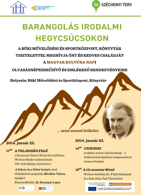 A teljesség felé című, Weöres Sándor születésének 100. évfordulója tiszteletére rendezett vándorkiállítás január 22-től a büki művelődési központban látható.