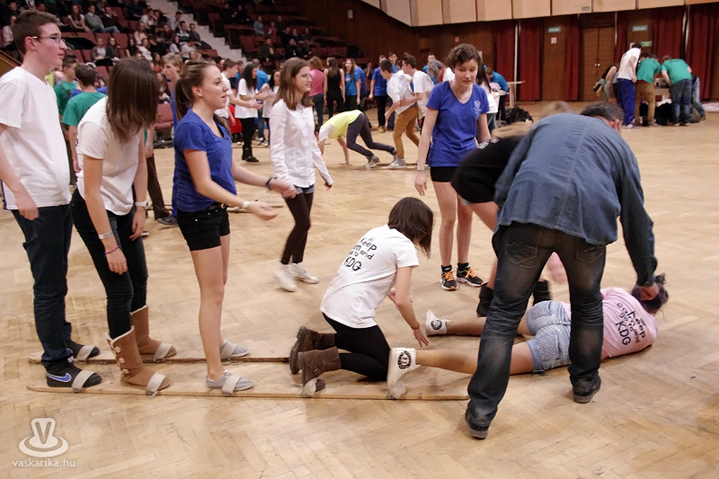 Idén öt iskola egy-egy elsőosztálya tette próbára magát a kreatív feladatmegoldásban. A KDG, az NLG, a Gépipari, az Orlay és a Savaria középiskolák elsősei számos feladatban bizonyították ügyességüket és kreativitásukat, s azt, hogy jó csapatszellem nélkül nincs siker.