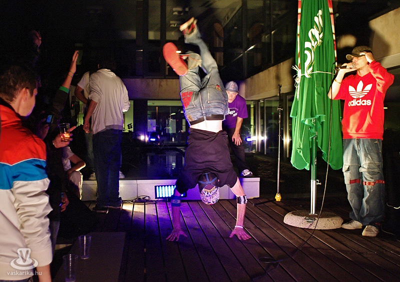 Cupi: Nem, valóban nem. Mindig is próbáltunk kis újdonságot, a megszokottól eltérőt húzni. Próbálkoztunk már szervezett freestyle versennyel, breakbemutatóval, a Hip-Hopon belül is specializált zenei hangzású partyival. Most egy egészen más jellegű dologgal, egy közösségi szubkulturális fórummal készülünk, amit az I. Vas megyei Közönségtalálkozó névre kereszteltünk. Egy kötetlen beszélgetés a buli előtt, ahol a Hip-Hop világának kedvelői, képviselői, úttörői találkoznak, összegyűlnek egy szervezett eszme- és tapasztalatcserére. Vendégeink az Akkezdet Phiai (Újonc, Saiid, DJ Frequent), DJ K, és a már említett világhírű breakeseink lesznek.