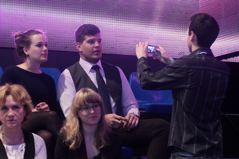 18.30-ra bőven bent vagyok a stúdió mögött, még nem engednek be, de majd szólnak. Mosdók elérhető közelségben, részletes program felragasztva mindenhova, különösebb tájékoztatás ugyan itt nincs, de ezernyi stábtag rohangál fel-alá, bárkit bármivel megszólíthatsz, azonnal segít, kérdez, útbaigazít. Közben feltűnik Harsányi Levente és Gundi is, előbbi sokkal jobban néz ki élőben, Gundi meg hát... még jobban, ha ez lehetséges. A női mosdó körül tizenéves lányok megdöbbentő sminkekben és ruhákban, övszerű szoknyákkal, gigantikus cipősarkakon - még szerencse, hogy én nézni jöttem, nem látszani.