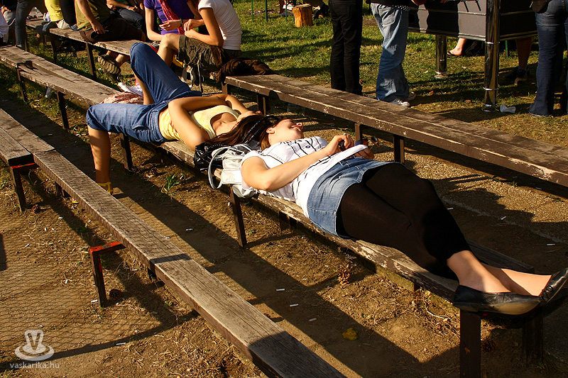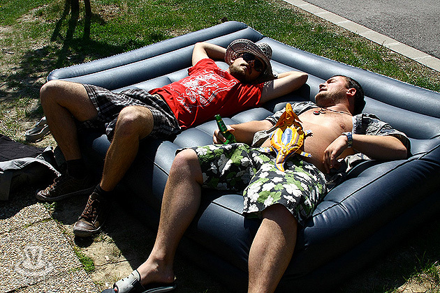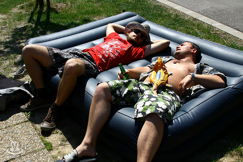 A későbbiekben a napozásé és a csendes sörözgetésé volt a főszerep: mindeközben a lelkesebbjei kiugrálhatták a nap fáradalmait a sebtében felállított trambulinon, vagy éppenséggel szumózhattak egyet legtitkosabb ellenségeikkel, hogy a hatalmas ruhák jótékony védelmében számolhassanak el régi sérelmeikért. Négy óra tájt pedig már gyülekeztek a férfiak, kik eme mivoltukat azzal húzhatták alá, hogy női gúnyát öltve rohangáltak az egyetem körül, bizonyítva elszántságukat. S most már láthatjuk azt is, hogy nem a Puffin lekvár, hanem csak a sör adhat erőt és mindent lebíró akaratot!