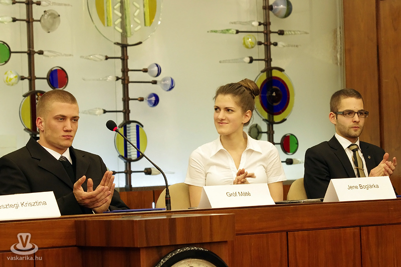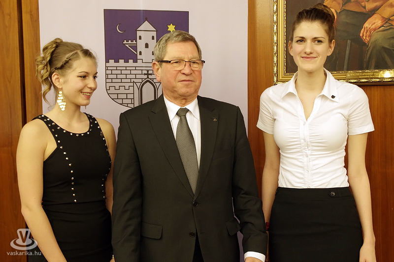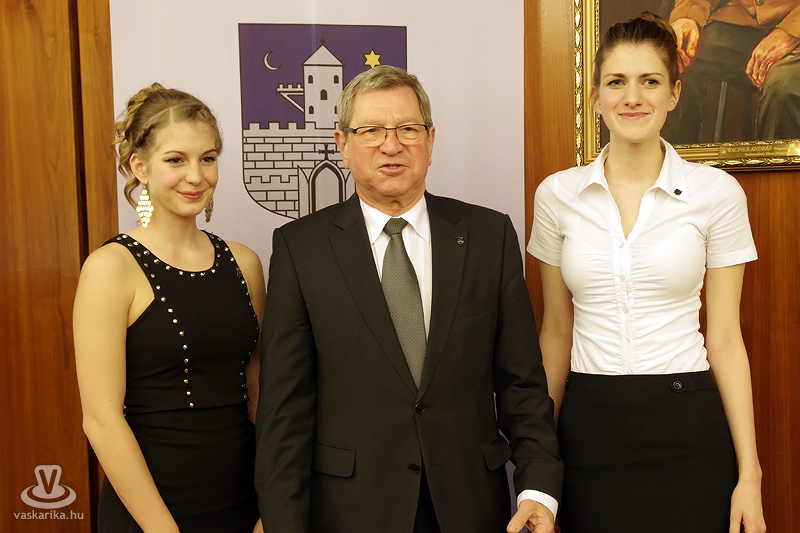 b-j: Peresztegi Krisztina diákpolgármester, Dr. Puskás Tivadar, SZMJV polgármestere és Jene Boglárka diák-alpolgármester