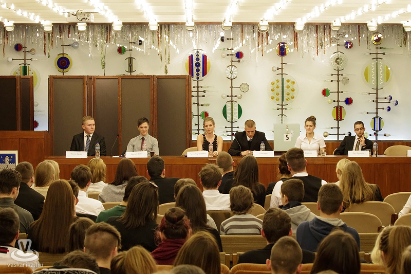 A leköszönő diákpolgármester gondolatai után kezdetét vette az új jelöltek bemutatkozása, programjuk rövid, ötperces ismertetése. Három polgármesterjelölt és két alpolgármester jelölt lépett a mikrofon elé, hogy meggyőzze az általános- és középiskolák képviseletében jelenlevő közel 120 elektort, s begyűjtse szavazataikat.
