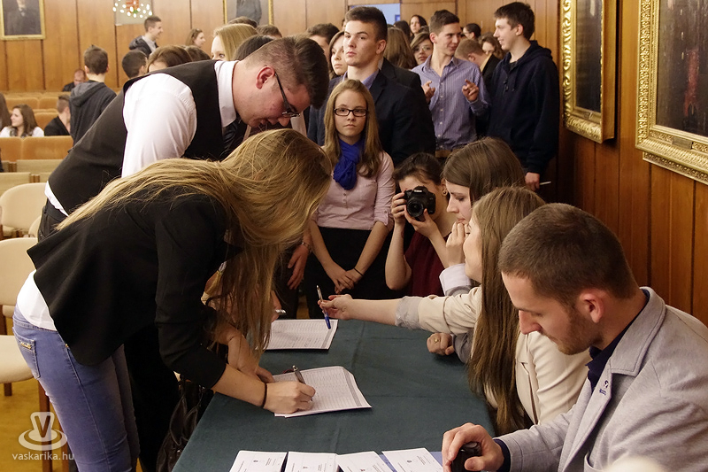 Szerda délután szinte megtelt a Városháza nagyterme diákokkal, akiket Dr. Puskás Tivadar polgármester köszöntött. A város első embere beszédében kiemelte, hogy a mai nap a demokrácia ünnepe a szombathelyi ifjúság körében, s reményét fejezte ki, hogy a diákság új vezetői ugyanolyan jó kapcsolatot ápolnak majd, s ugyanolyan intenzitással részt vesznek a város társadalmi és kulturális életében, ahogy azt a korábbi diákpolgármesterek és alpolgármesterek tették.