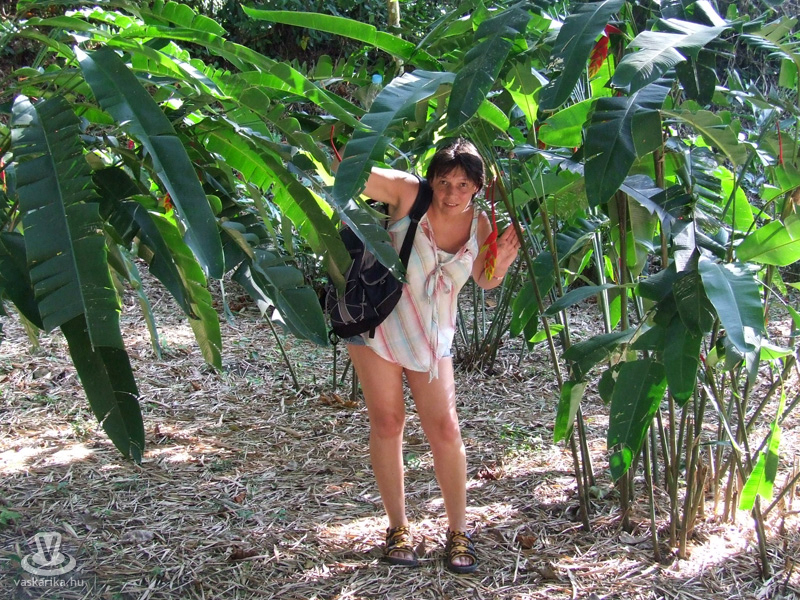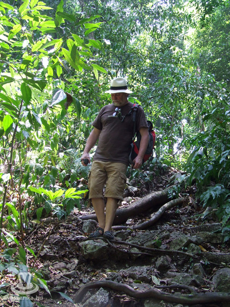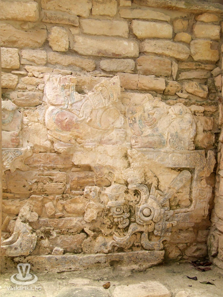 Ez a hely nagyon vadregényes volt. Turista alig volt, árus egy sem, ellenben már az első lépések megtétele után bőgőmajmokat fedeztünk fel az ösvény melletti fákon, déli sziesztájukat tartották éppen. A romváros területére egy épületen át lehetett csak bejutni,- feltéve, ha valaki nem akart az erdőn át csapást vágni. Ezen az épületen több, kúp alakú nyílás is volt, ezeknek a tetejéről denevérek lógtak, de a sok közül csak az egyik volt az igazi, labirintusszerű bejárat, ezért mindegyikkel próbálkozni kellett.
