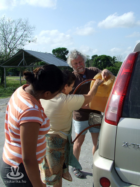 Már készen álltunk az út folytatására, amikor azzal szembesültünk, hogy a Calakmul romvárosában tett 120 km-es kitérőnek hála benzinkészletünk alaposan megcsappant, és a következő nagyobb lakott településig, Escarcégáig nem jutunk el. A recepción szolgálatot teljesítő helybeli készségesen megsúgta nekünk, hogy a legközelebbi maja falucskában, az út bal oldalán, a kisbolt melletti kék házban lehet vásárolni benzint. Soha nem hittem volna, hogy fiatalkori emlékeim egyike, az „erdélyi benzin biznisz" Mexikóban köszönt újra rám!