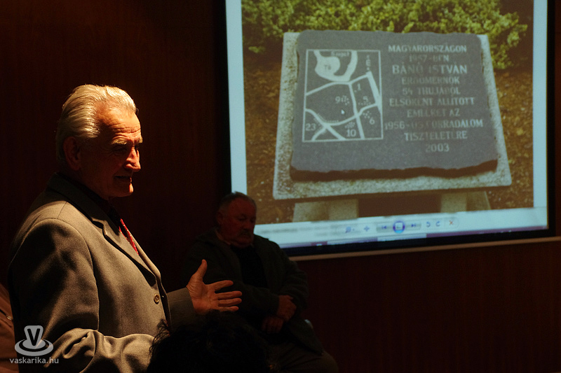 Bánó István idejében létesült az első 1956-os emlékmű, méghozzá oly módon, hogy csak a beavatott szem ismerhette fel, hogy mi is az tulajdonképpen. Az emlékmű tujákból készült, a tuják számát úgy csoportosítva, hogy a fák 1956 10. 23-át tegyék ki.