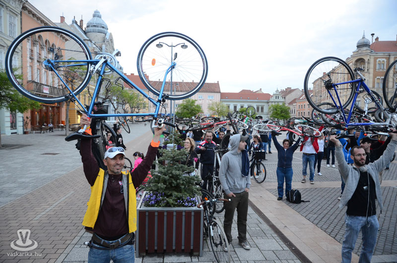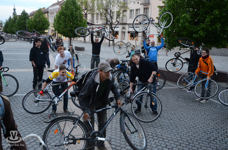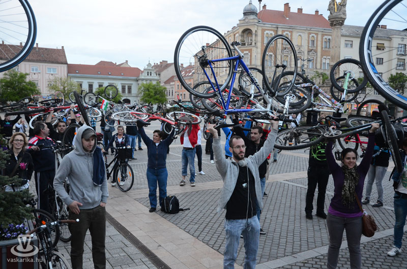 Április 22-én újra Critical Mass kerékpáros vonulás volt Szombathelyen. A korábbi megmozdulásnál jóval kevesebben pattantak kerékpárra és tettek egy laza esti kört a városban. A túra végén a Fő téren kétszer emelték magasba kerékpárjukat a résztvevők. A rendezvény "A nagy tavaszi zsongás 12." címet viselte. A családias létszám vélhetően a korábbinál kisebb médianyilvánosságnak köszönhető, esetleg sokan a Húsvéthétfő fáradalmait pihenték ki. Mindenesetre akik barátaik körében tekertek egy jót, azok jól érezték magukat. Fotóink a Fő téri emelést örökítették meg.