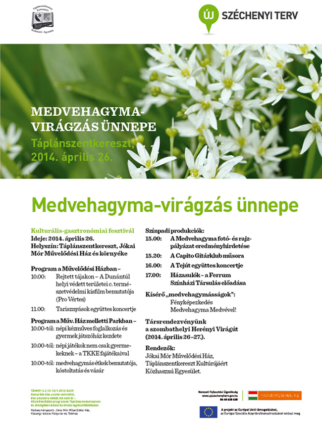 10.00-tól: medvehagymás étkek bemutatója, kóstoltatás és vásár