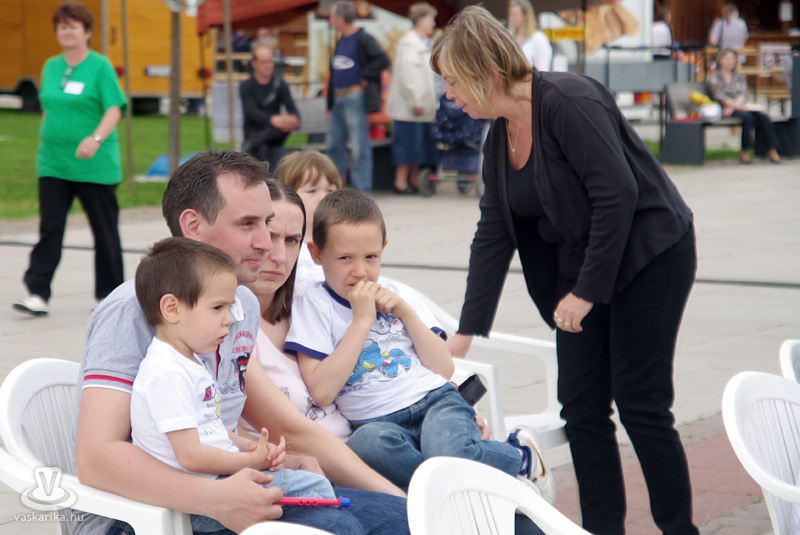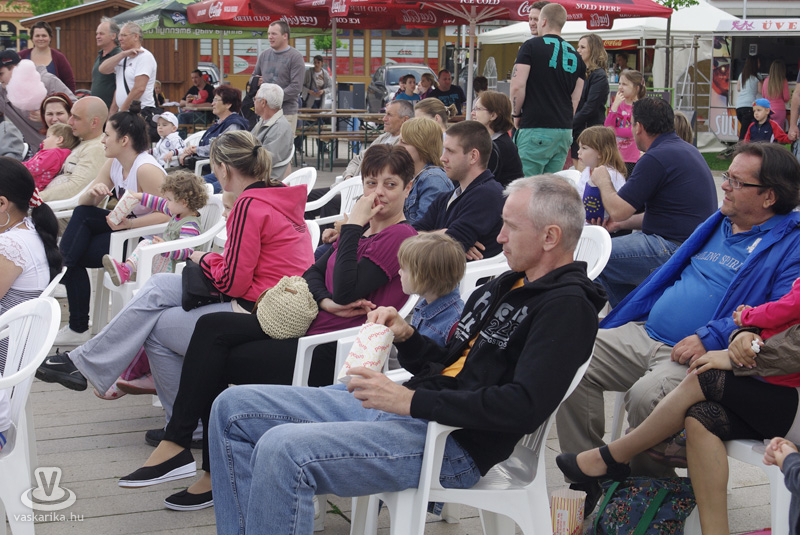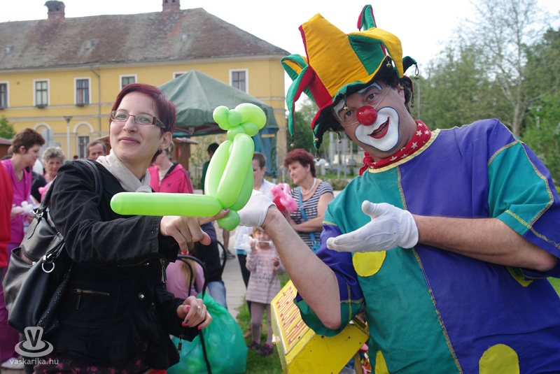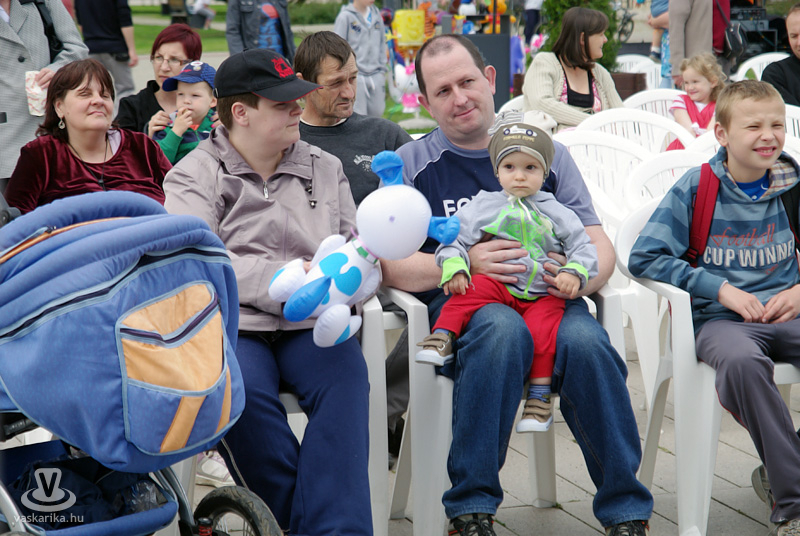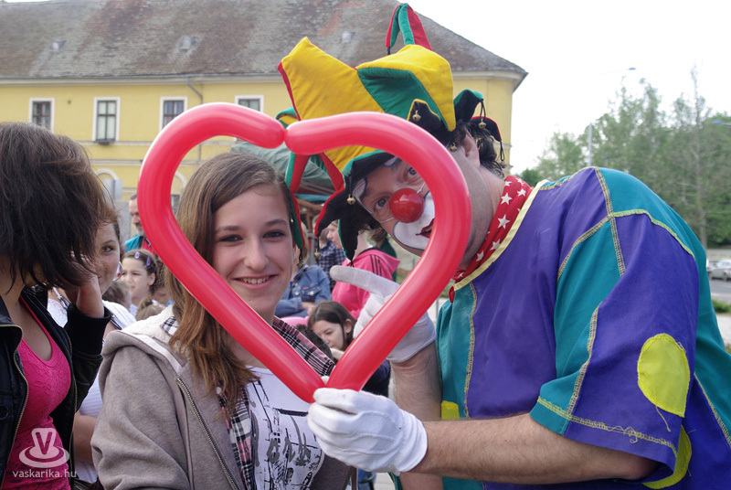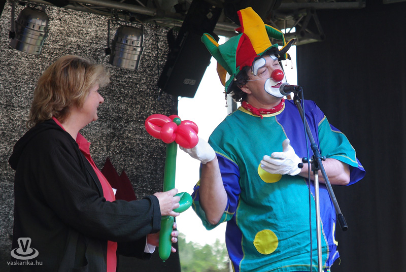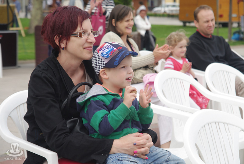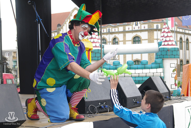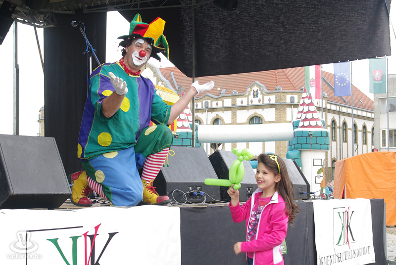 A színpadon Bon zsúr bohóc kezdte meg interaktív műsorát. Lufiból készült papagáj, mackó, kisegér, majd a műsor végeztével minden gyerek kaphatott kis lufifigurákat. Örömmel nyugtáztuk, hogy az igényes gyerekprogramokra igenis van igény, a tér szépen megtelt családokkal, gyerekekkel.