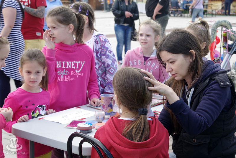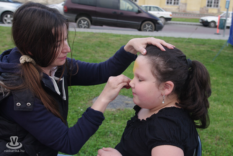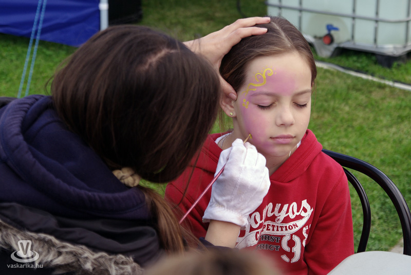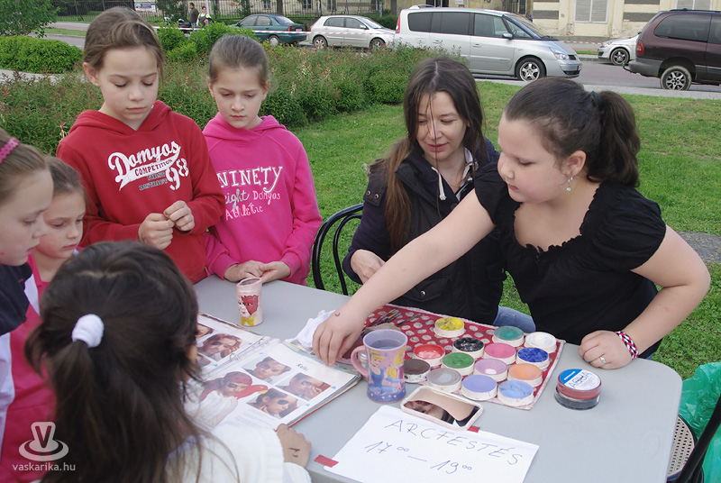 Közben a színpad mellett felállított kis asztalkánál elkezdődött az arcfestés. Egy kis idő múlva találkozhattunk „oroszlánnal", „kiscicával", sőt, volt kislány, akinek arcára egy komplett pálmafás tengerpart rajza került.