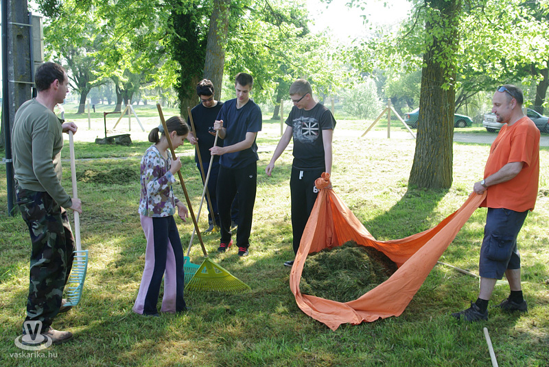A Rába partján a Csónakháznál reggel 9-re várták a segíteni vágyókat. A feladat az udvar és az épület rendbetétele és takarítása volt. Különösen jól esett a szabadban, mozgással eltöltött idő, ahol a Kulturális Központ munkatársai gulyáslevessel vendégelték meg a segítőket. A Csónakháznál van még tennivaló, hiszen az idő szűkös volt a teljes rendbetételre, de jó volt látni, hogy nem hagyják veszni ezt a szép és értékes, funkcióját tekintve hiánypótló épületet a Rába partján.