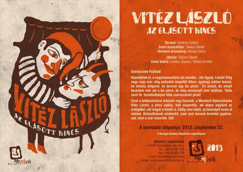 Képzeljétek el, a nagymamucikám azt mondta: „Ide figyelj, László! Elég nagy vagy már, elég puliszkát megettél itthon, úgyhogy jobban teszed, ha elmész dolgozni, és keresel egy kis pénzt." Én annyit, de annyit kerestem már azt a kis pénzt, de még semennyit sem találtam. Talán most itt, Szombathelyen több szerencsével járok!Ezzel a beköszöntővel érkezett meg hozzánk, a Mesebolt Bábszínházba Vitéz László, a piros sipkás, báb szuperhős, aki képes legyőzni az ördögöket, sőt magát a Halált is. Eddig nem látott, új kalandjait hozta el nekünk. Biztosíthatunk mindenkit, ezek sem lesznek kevésbé izgalmasak, mint a már ismertek. Sőt!