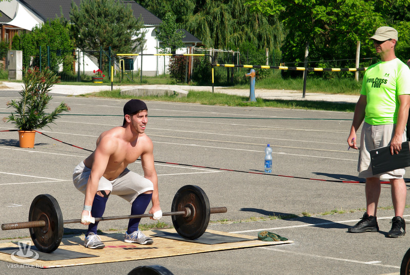 A feladatok között szerepelt a box jumpra ugrás, húzódzkodás, helyből szakítás és a négyütemű fekvőtámasz is. A versenyzőknek a hatalmas meleggel is meg kellett küzdeniük, hiszen a betonos placcon felállított pályára egyetlen árnyék sem vetődött. A nap folyamán az épp feladatot teljesítők mellett folyamatosan ott állt egy bíró, hiszen - ahogy el is hangzott - ilyenkor ő vigyáz a versenyzőre az edző helyett.
