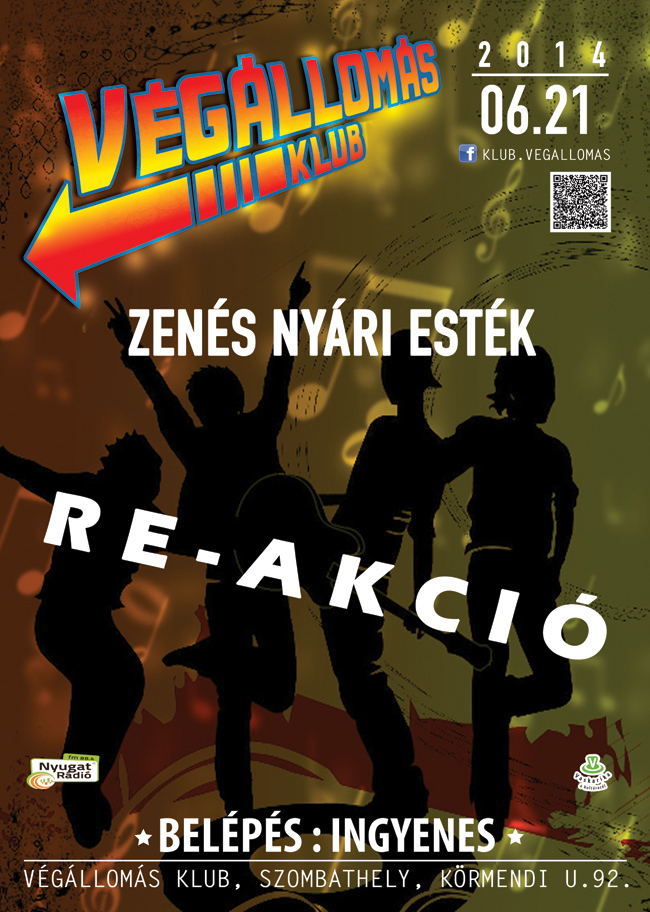 Szombaton, immár a kerthelyiségben a Re-.Akció szórakoztatja a nagyérdeműt egy kellemes szabadtéri, zenélgetés keretében.