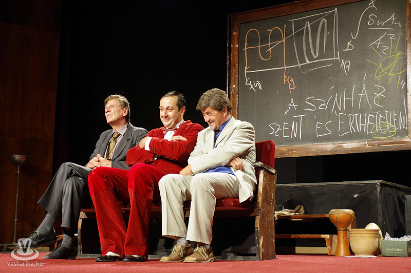 Vancsók igazi kezdeményező, kreatív ember, akit a kudarcok sem kényszerítettek térdre, számos találmányt nyújtott be a szabadalmi hivatalba, melyek a hivatásos nézővé válást segítik. A komédia persze nem lenne komédia, ha a dolgok nem romlanának el, nem mennének tönkre, így rázza majdnem halálra Imrét Vancsók szerkezete. Külön említést érdemel Színházi Lacika, aki a színházban született és nőtt fel, minden előadást ismer. Katona László kiválóan alakítja a segítőkész, kissé elmaradott, nézésével perzselő, a színi előadásokat vadul védelmező Lacikát. Katona Lászlónak meg sem kellett szólalnia, elég volt mindent tudó, ám kissé bamba nézésével a közönség felé fordulnia, s a terem máris nevetéstől harsogott.