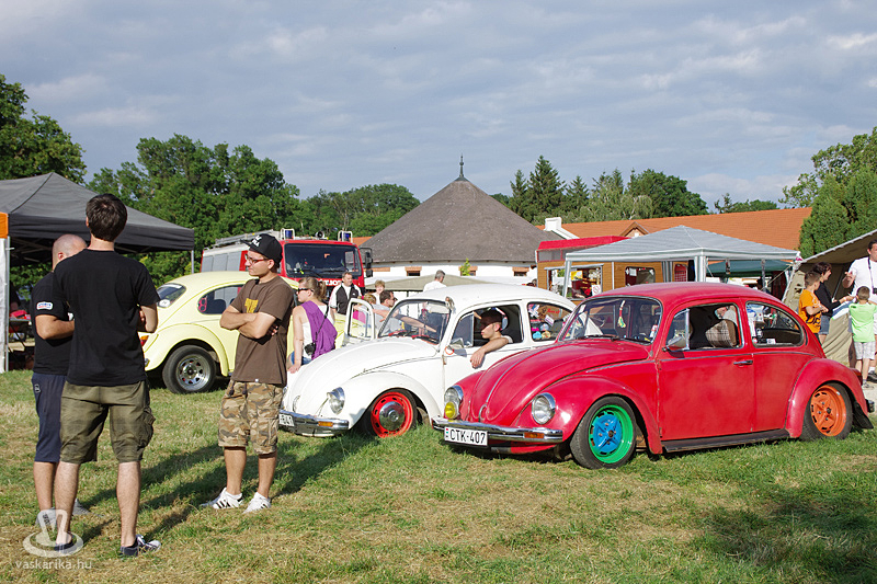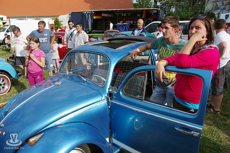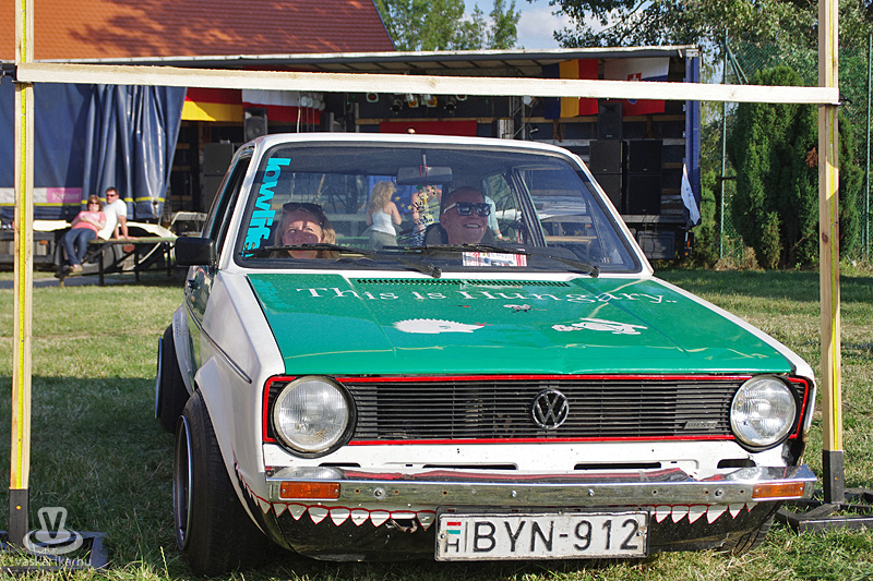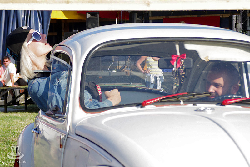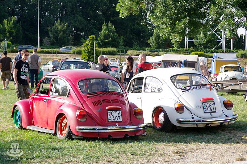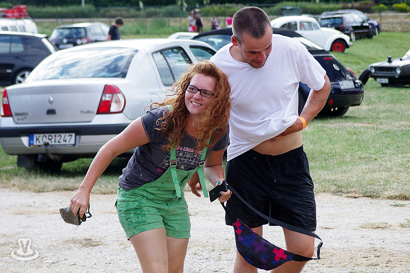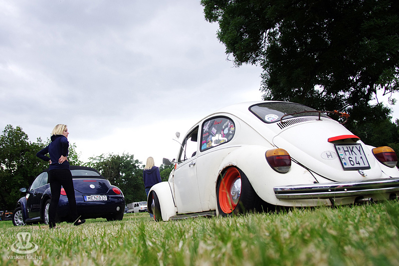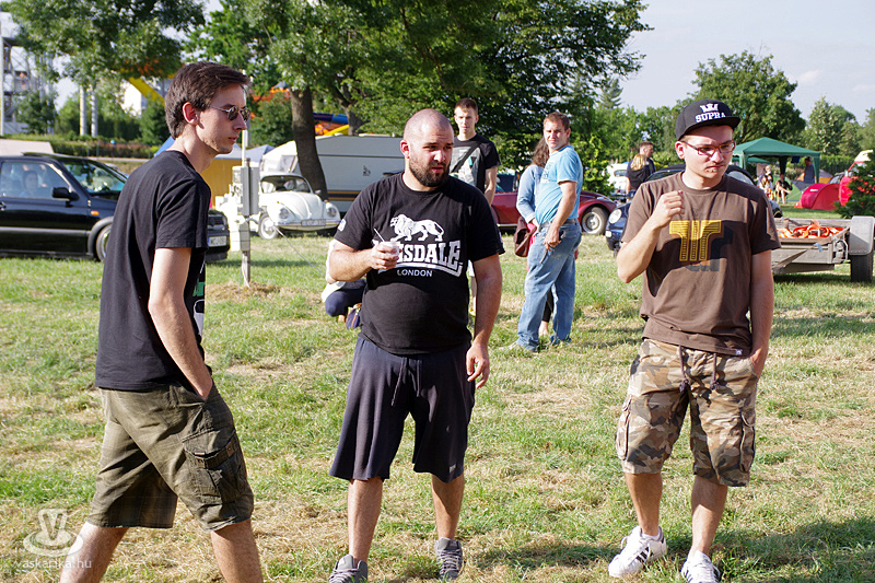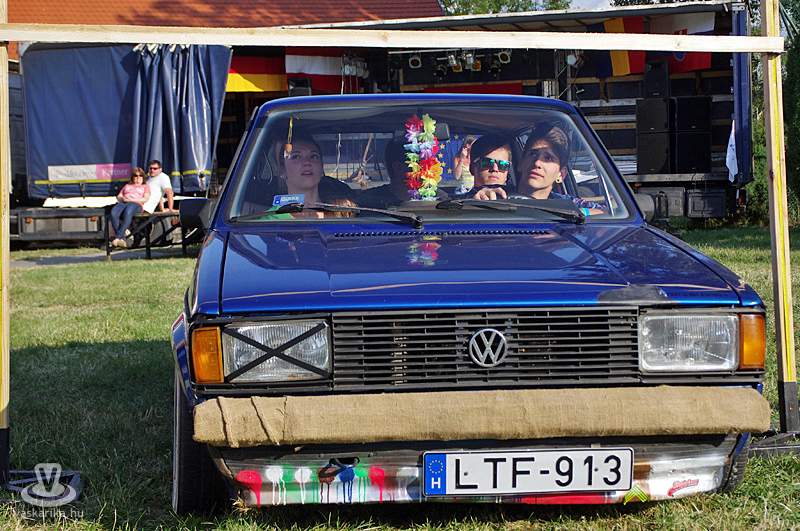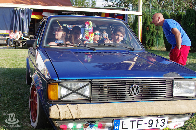 A délután a zenés produkciók és a versenyek jegyében zajlott. Utóbbi a léghűtéses és a vízhűtéses VW-k hangnyomás mérésével indult. Előbbit Szabó Kornél nyerte meg, 123,6-os értékkel. Ezt követte a VW-limbó verseny, melyen különböző praktikákkal próbálták leültetni az autót a versenyzők, hogy az átférjen a léc alatt. A Bogaraknál erre a leghatásosabb a hátsó sárhányóra állás volt, míg egy Jetta csomagtartójába nehezékként 2-3 ember is befért. Nem maradtunk végig, de sejtjük, hogy egy VW Sciroccó a fűre tett limbóléc alatt is átfért volna....