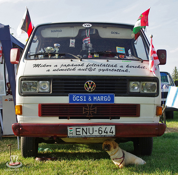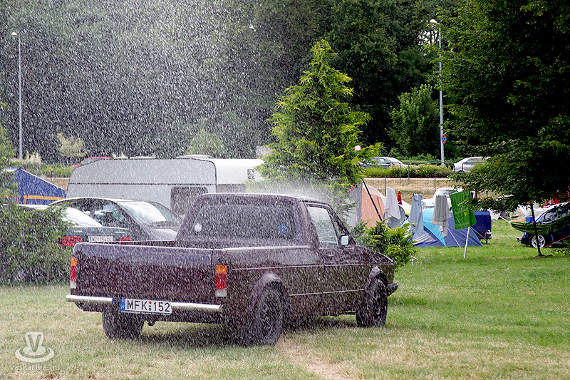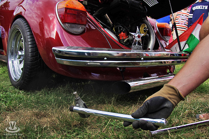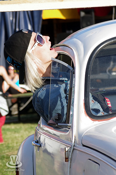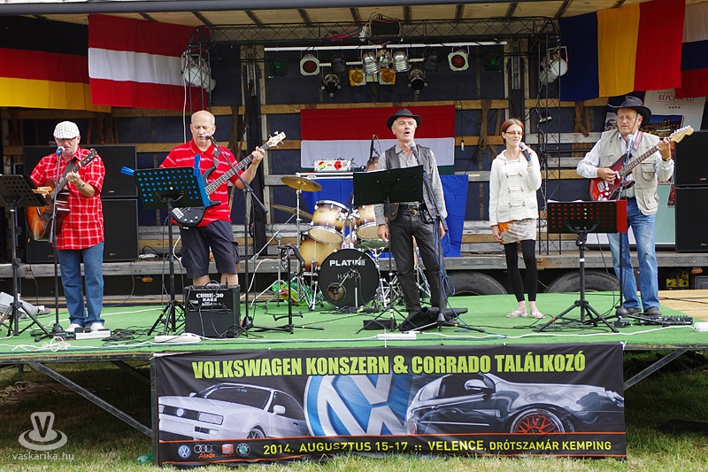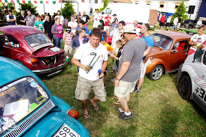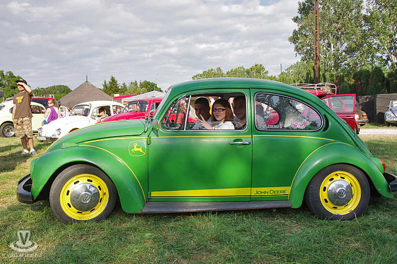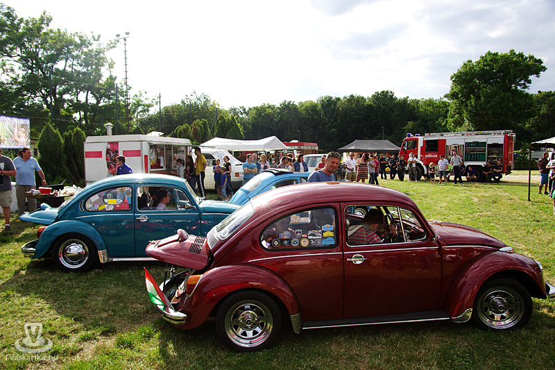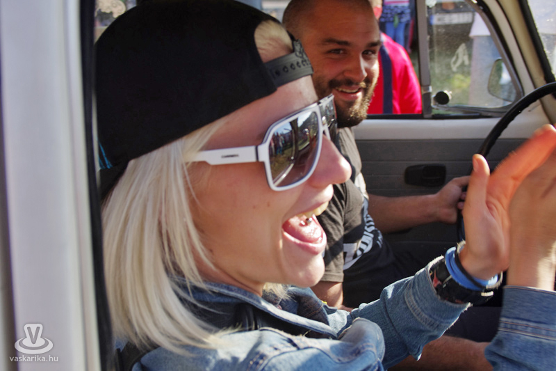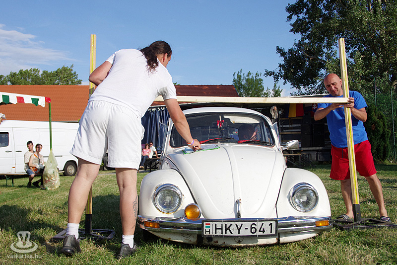 A délután a zenés produkciók és a versenyek jegyében zajlott. Utóbbi a léghűtéses és a vízhűtéses VW-k hangnyomás mérésével indult. Előbbit Szabó Kornél nyerte meg, 123,6-os értékkel. Ezt követte a VW-limbó verseny, melyen különböző praktikákkal próbálták leültetni az autót a versenyzők, hogy az átférjen a léc alatt. A Bogaraknál erre a leghatásosabb a hátsó sárhányóra állás volt, míg egy Jetta csomagtartójába nehezékként 2-3 ember is befért. Nem maradtunk végig, de sejtjük, hogy egy VW Sciroccó a fűre tett limbóléc alatt is átfért volna....