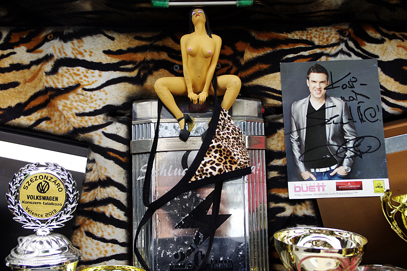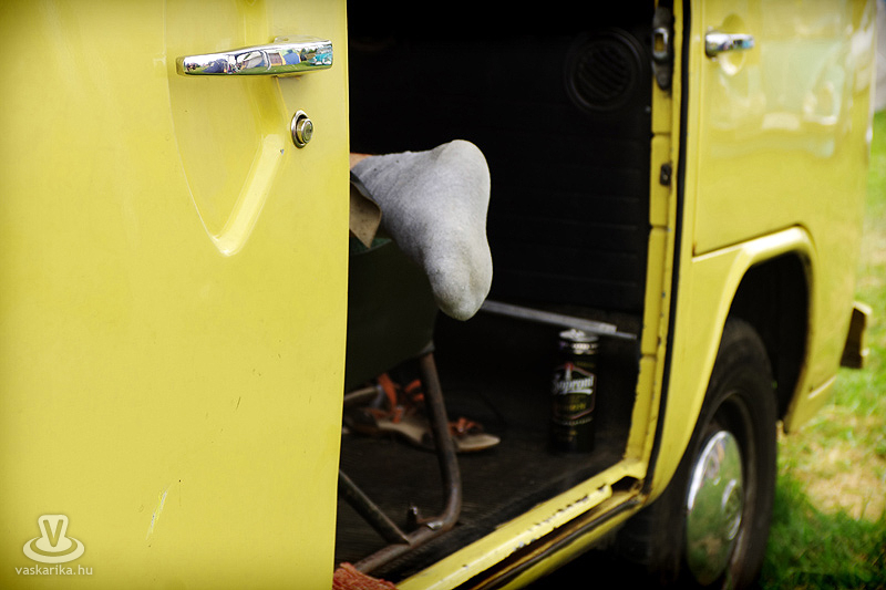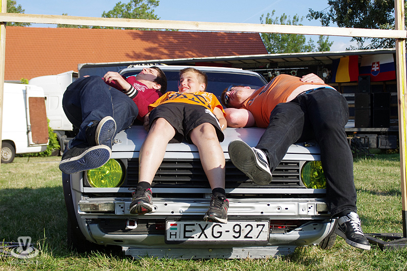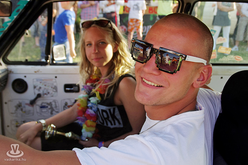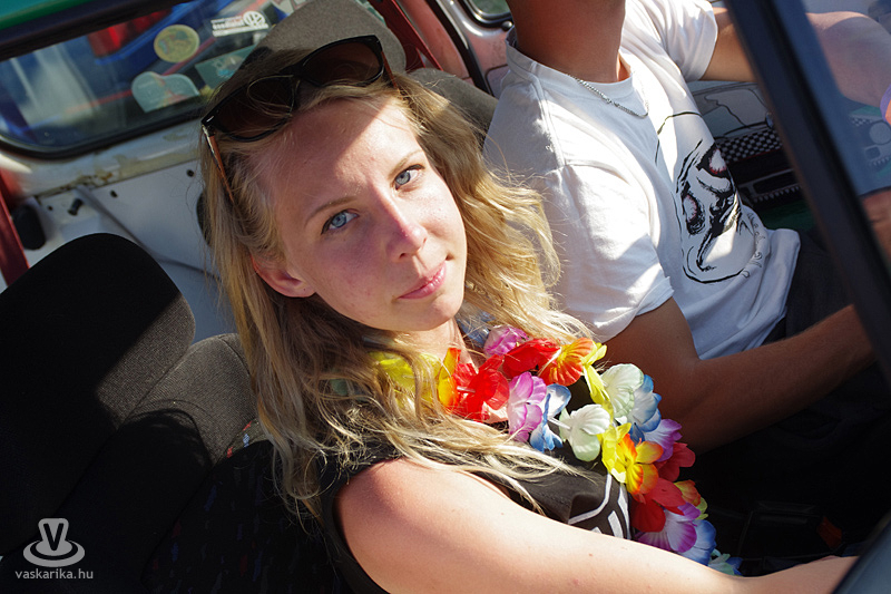 A visszatérés utáni közös bográcsozás és ejtőzés alkalmas volt arra, hogy szemügyre vegyük az olykor extravagáns járgányokat. Így futottunk bele egy "tigriskárpitos" retro VW-be, amiben az auto Hi-Fi uralta a teret, s legnagyobb ledöbbenésünkre egy első lámpákba épített mini akvárium, benne úszkáló díszhalakkal... A dedikált Kasza Tibi plakátot kontextusidegennek éreztük, de a kagylós-díszhalas lámpa után már semmin nem lepődtünk meg.