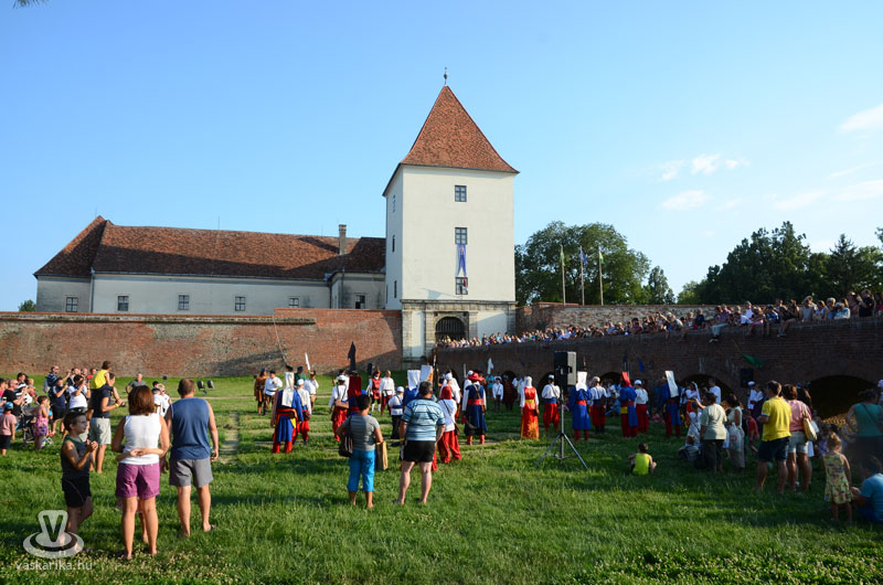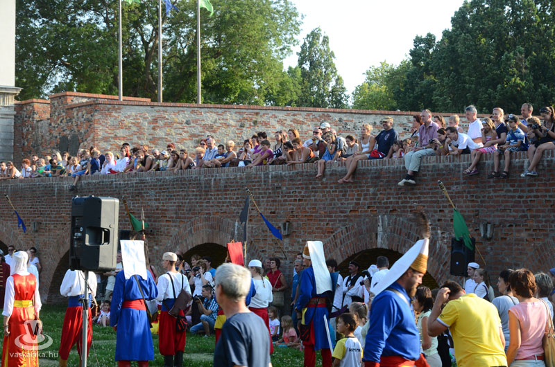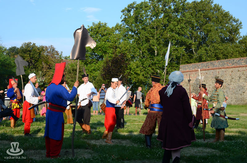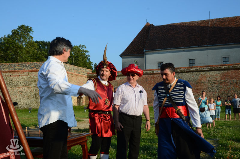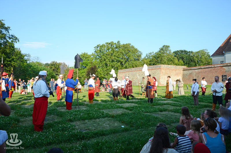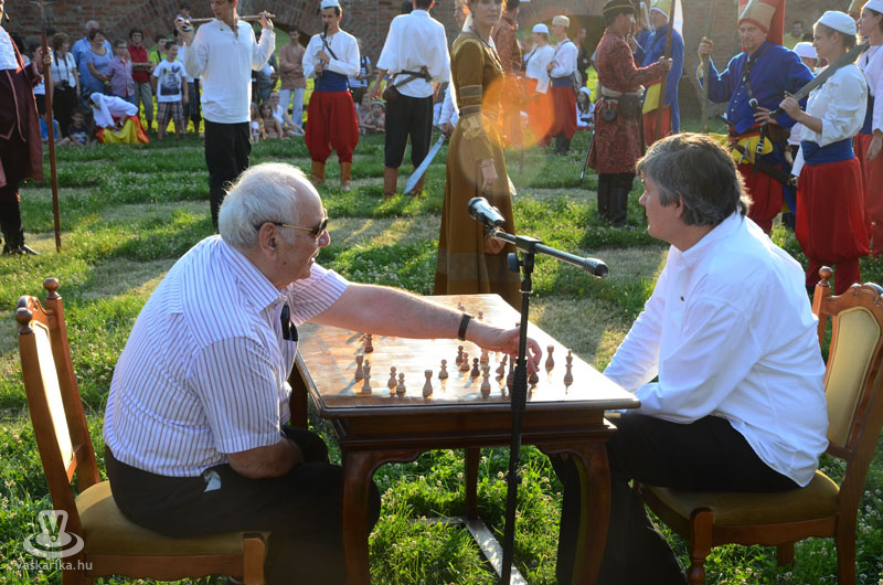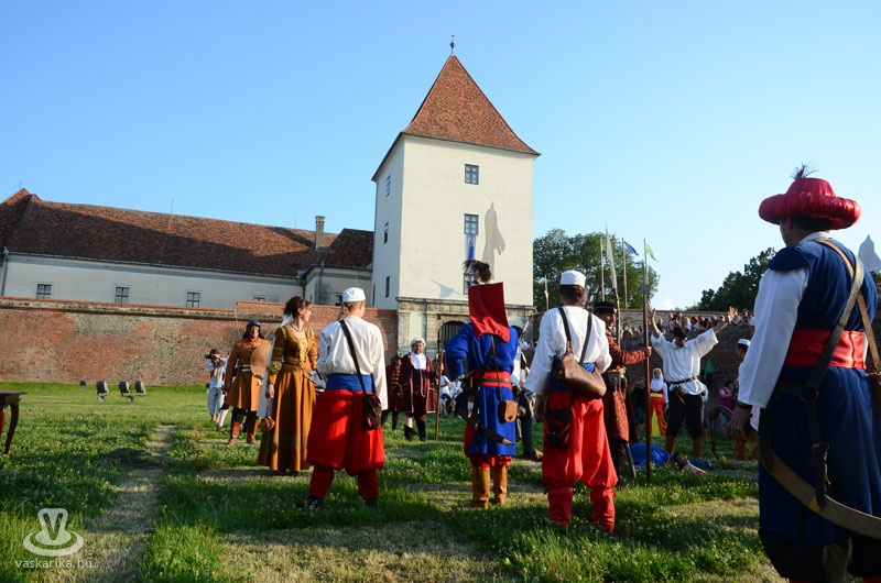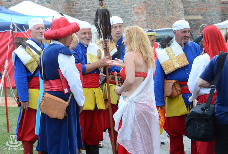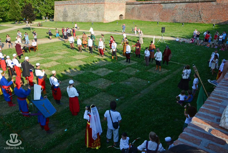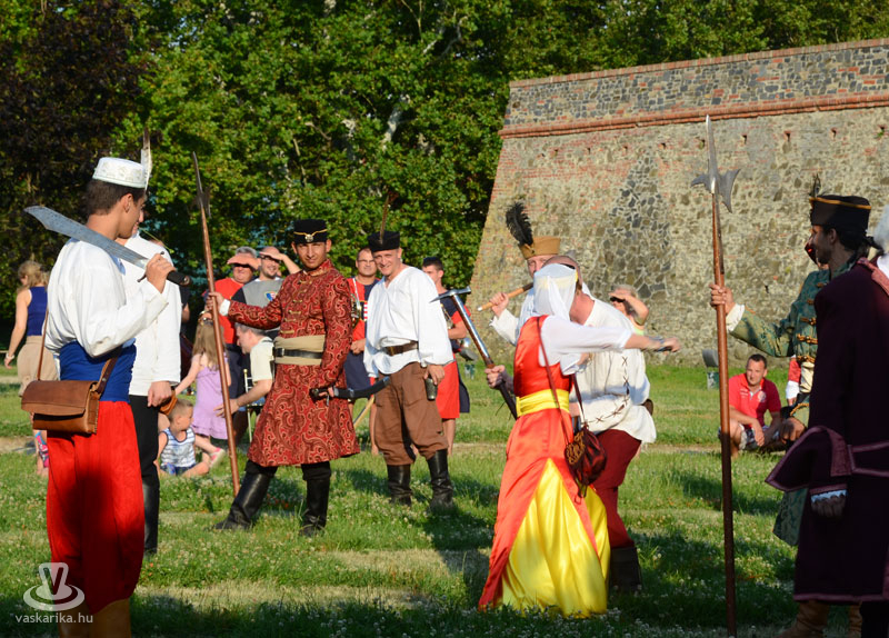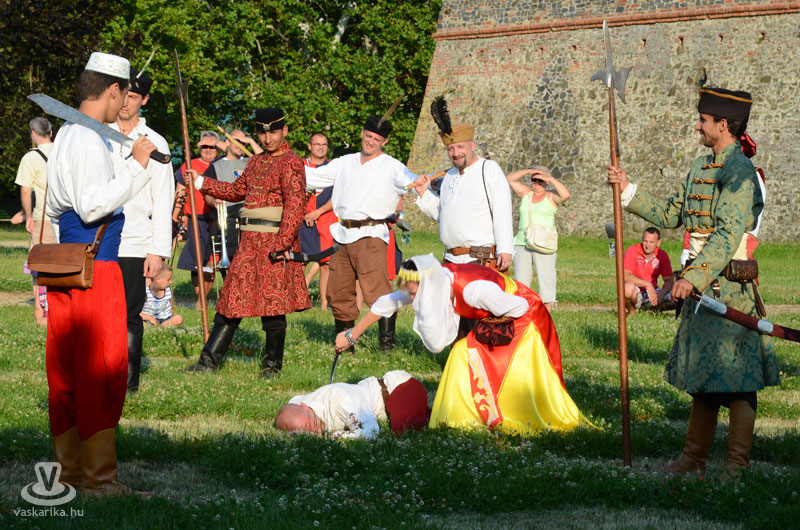 Július 18-án a hagyományoknak megfelelően ágyútűzzel vette kezdetét a históriás fesztivál. A késődélutáni programok közt előbb ünnepi megemlékezésre és koszorúzásra került sor a Fekete bég szobránál, majd Burns Kati és a Hajna dalai töltötték be a várudvart. A délután leglátványosabb programja minden bizonnyal az élőfigurás sakkjátszma volt, melyre rengetegen voltak kíváncsiak a Várparkban. A magyar vitézeket Portisch Lajos, a Nemzet Sportolója vezette. A várszínpadon az esti koncertek előtt a Desenvoltura spanyolos-flamncós zenéje vonzotta a várudvarba a közönséget. A pénteki nap esti programjairól hamarosan külön képanyaggal jelentkezünk.