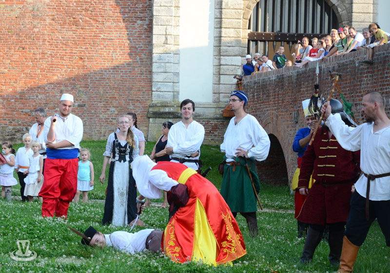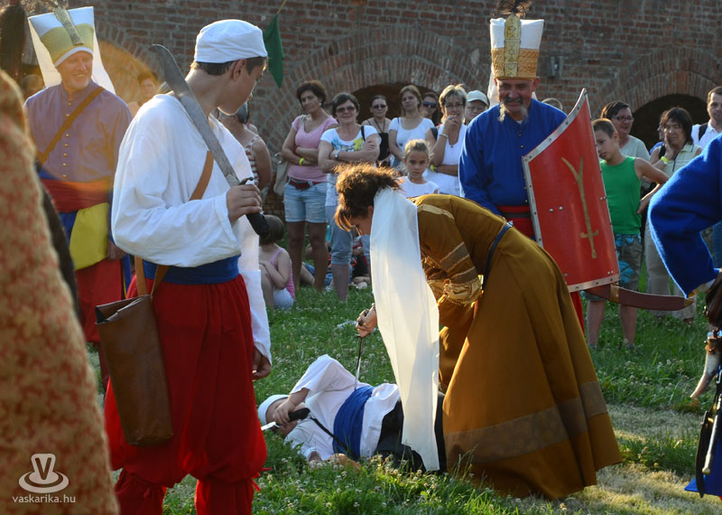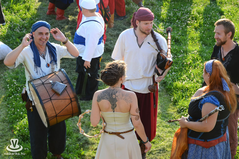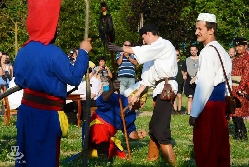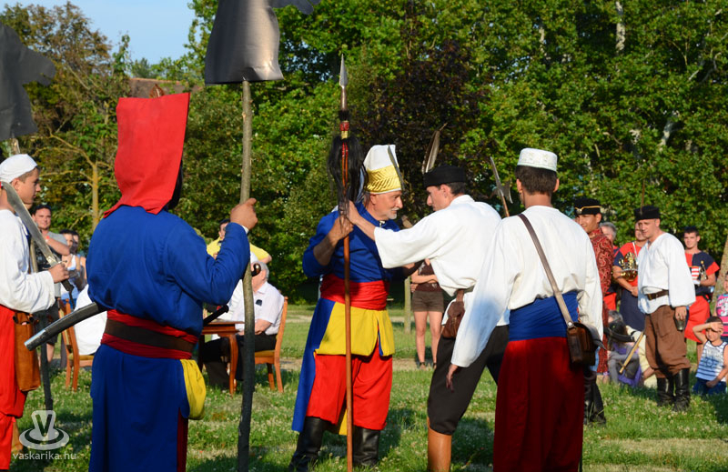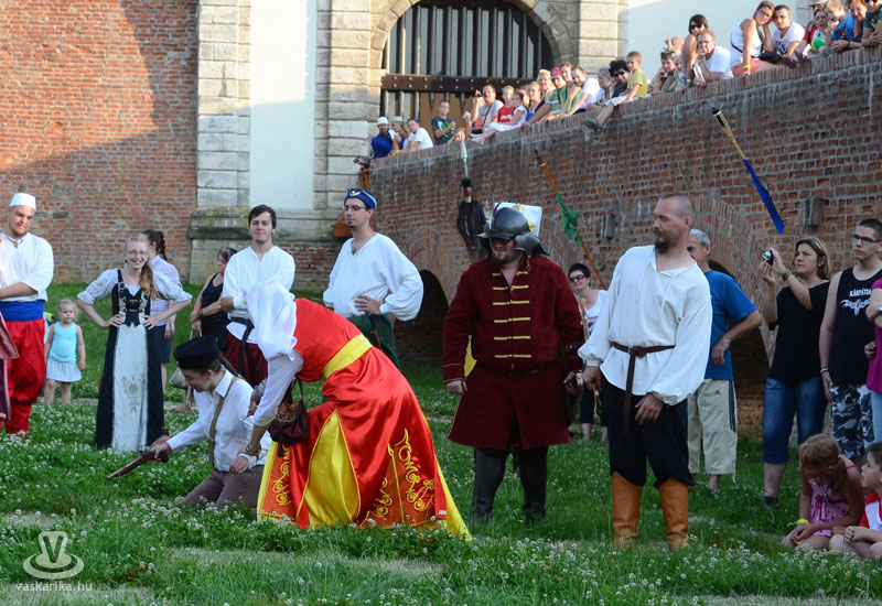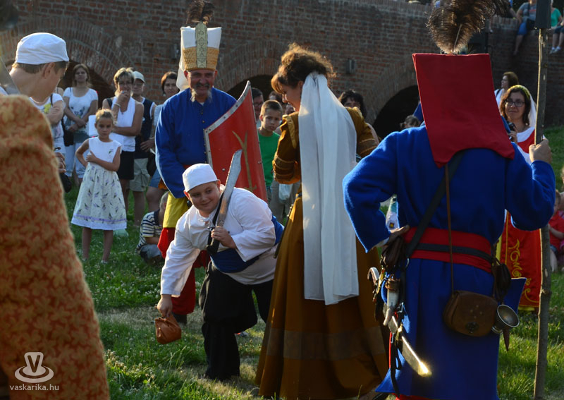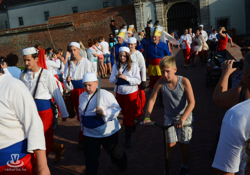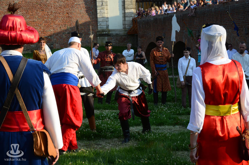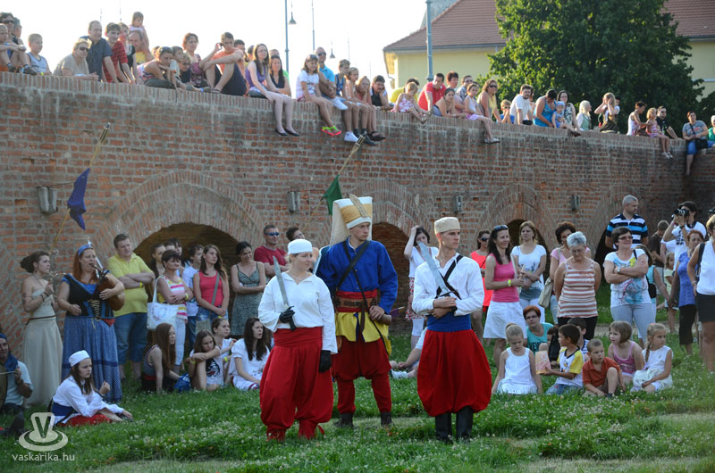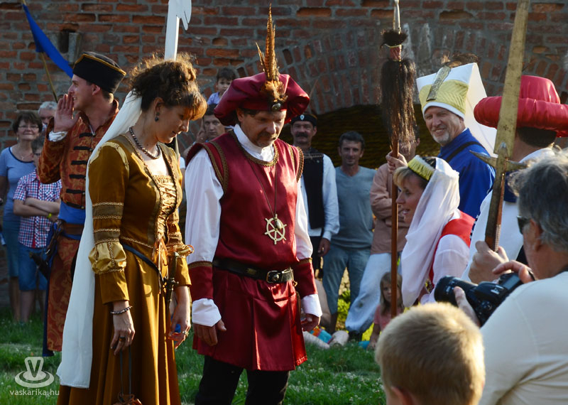 Július 18-án a hagyományoknak megfelelően ágyútűzzel vette kezdetét a históriás fesztivál. A késődélutáni programok közt előbb ünnepi megemlékezésre és koszorúzásra került sor a Fekete bég szobránál, majd Burns Kati és a Hajna dalai töltötték be a várudvart. A délután leglátványosabb programja minden bizonnyal az élőfigurás sakkjátszma volt, melyre rengetegen voltak kíváncsiak a Várparkban. A magyar vitézeket Portisch Lajos, a Nemzet Sportolója vezette. A várszínpadon az esti koncertek előtt a Desenvoltura spanyolos-flamncós zenéje vonzotta a várudvarba a közönséget. A pénteki nap esti programjairól hamarosan külön képanyaggal jelentkezünk.