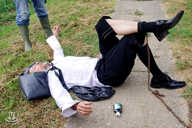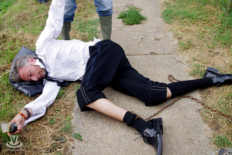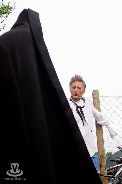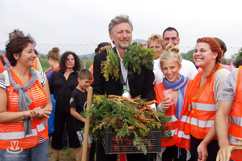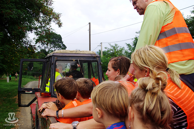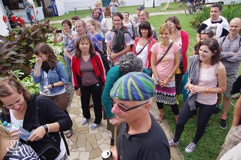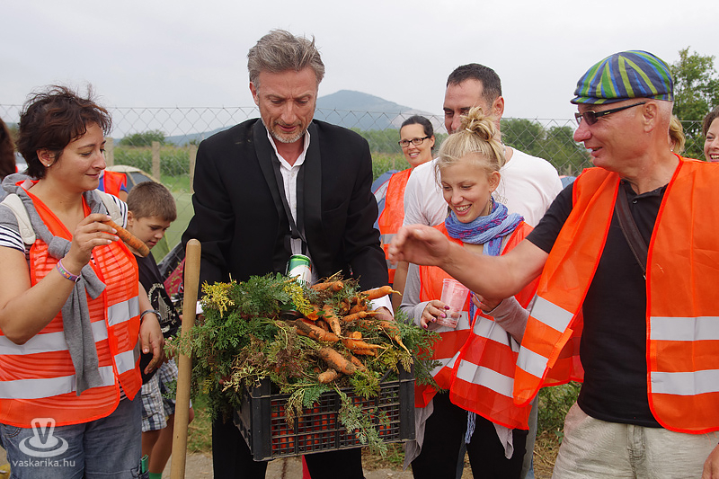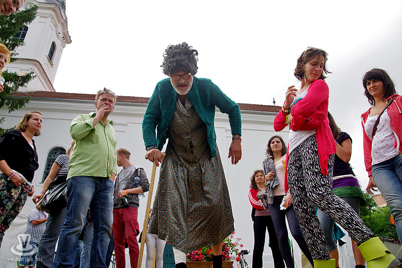 Köles Feri a templomkertben maga köré gyűjtött minket és beavatott a tutiba: az NKA 403 programra adott engedélyt a Katlanban, ez a 404., így ez már nem a fesztivál része. Plusz a létszámunknál fogva is kimerítjük a mozgalom fogalmát... Emiatt mindegyikünk kap egy-egy narancssárga láthatósági mellényt, mert ekkora létszámban csak közhasznú munkásként alkothatunk csoportot. Faluturisták leszünk- közhasznú munkásoknak álcázva.