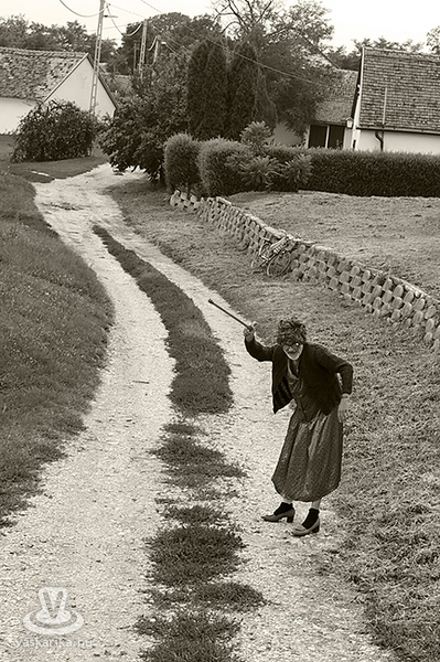 Harmadik kísérünk a 92 éves, deres szakállú Etus néni volt, aki mindent másként tudott, mint kirendelt kísérőink. Ő volt a helyi sztorifa, a kántrilegendek élő Benedek Elekje.