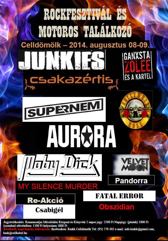 A Kemenesaljai Művelődési Központ és Könyvtár Rockfesztivált és Motoros Találkozót szervez augusztus 8-9-én Celldömölkön. A hétvégén a helyi, amatőr zenekarok mellett színpadra lépnek országos hírű rock zenekarok is.